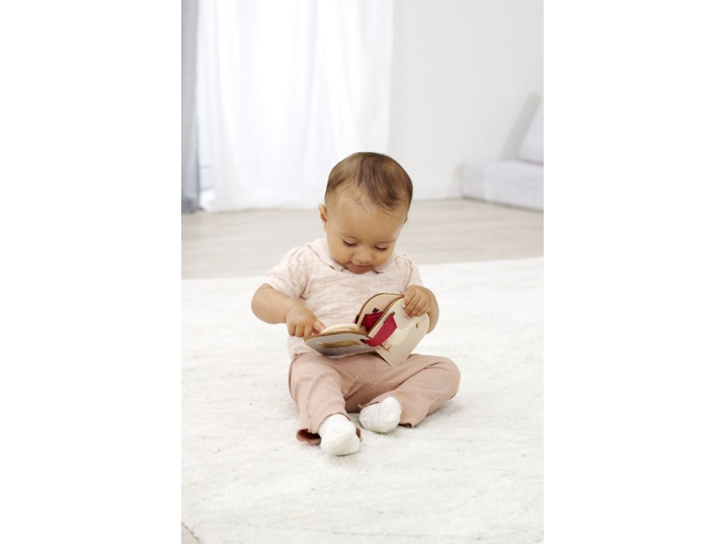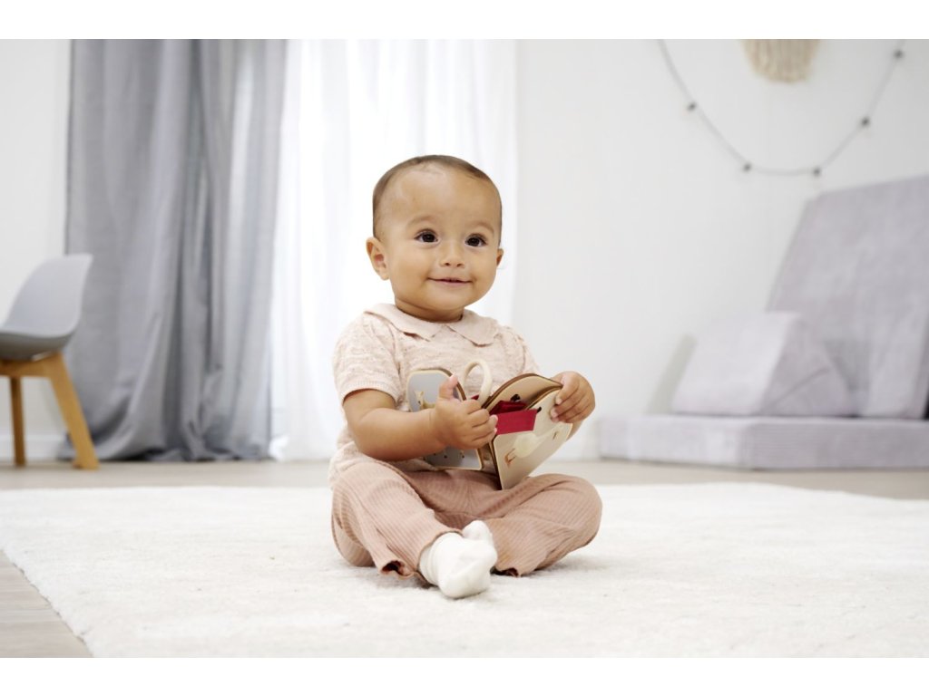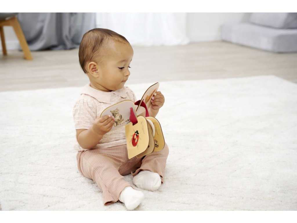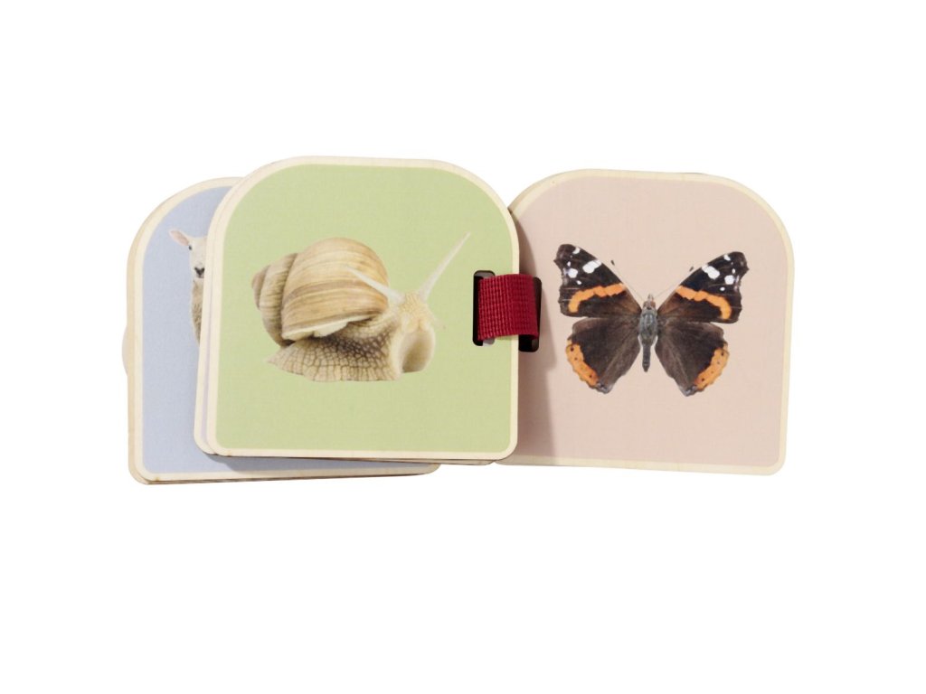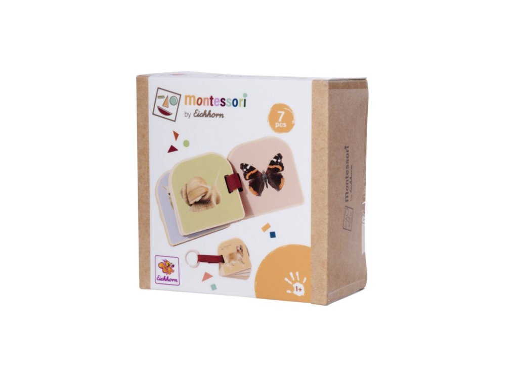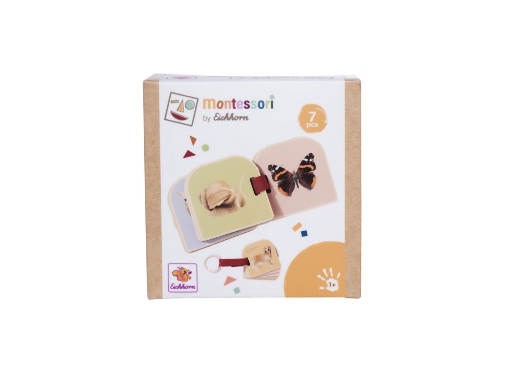 Krásná dřevěná knížka je prvním společníkem vašeho dítěte. Na 6 dřevěných stránkách najdete z obou stran roztomilé obrázky zvířátek. Knihu lze pomocí kroužku připevnit ke kočárku nebo autosedačce. Nebo ji umístěte před dítě, aby si mohlo obrázky prohlížet samo. Velikost a zaoblené rohy jsou ideální pro malé dětské ruce. Obrázková knížka Montessori je vyrobena ze 100% lipového dřeva s certifikátem FSC a je vhodná pro děti od 1 roku.