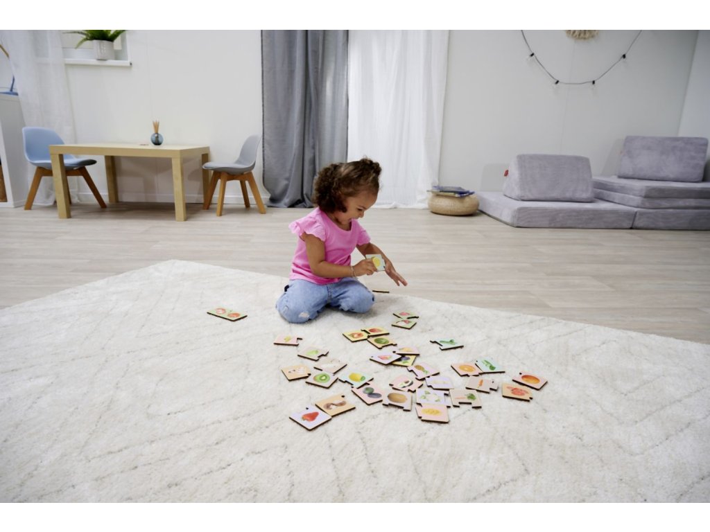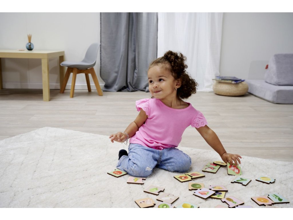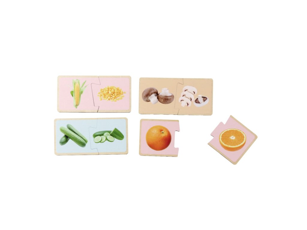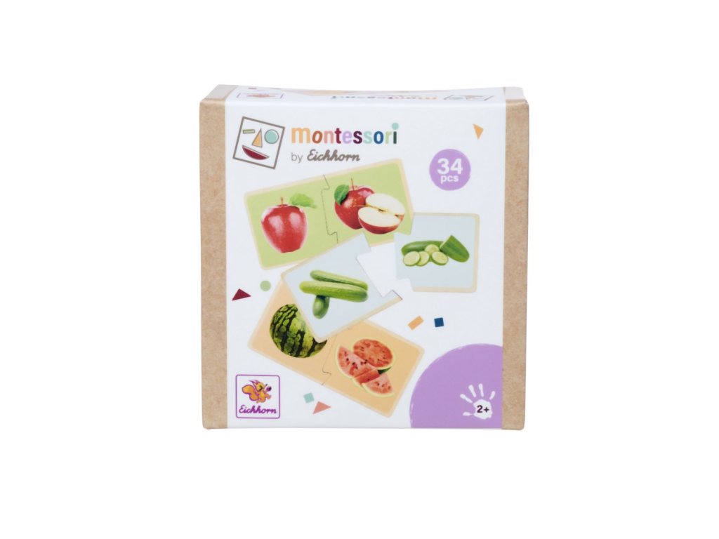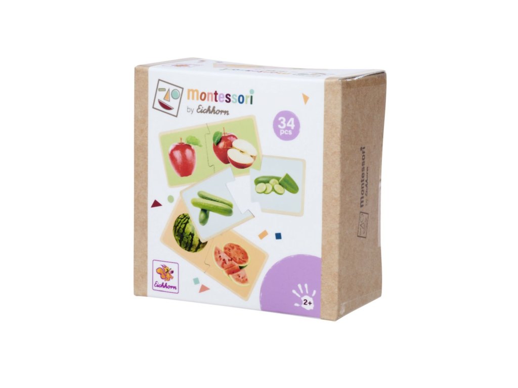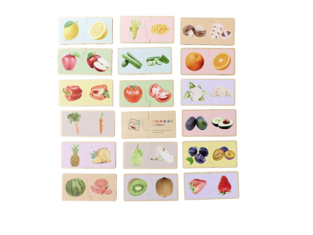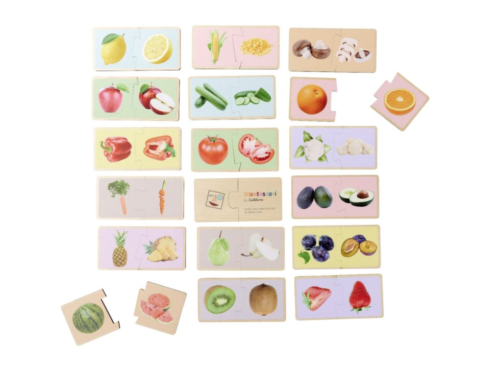 S těmito atraktivními dřevěnými puzzle z řady Montessori se vaše dítě naučí poznávat různé druhy ovoce a zeleniny. Shodné dvojice dílků musí poskládat a poté správně pojmenovat. Na 36 dílcích jsou natištěny realistické obrázky ovoce a zeleniny, které mohou děti vidět v každodenním životě. Dřevěné puzzle Montessori jsou vyrobeny ze 100% kvalitního lipového dřeva s certifikátem FSC a jsou vhodné pro děti od 2 let.