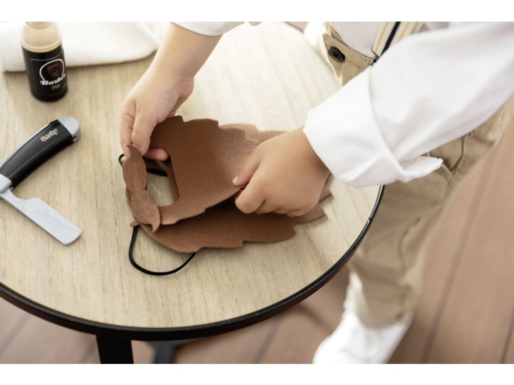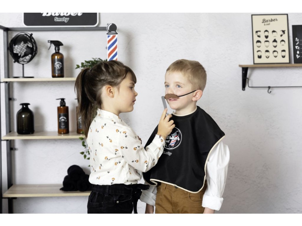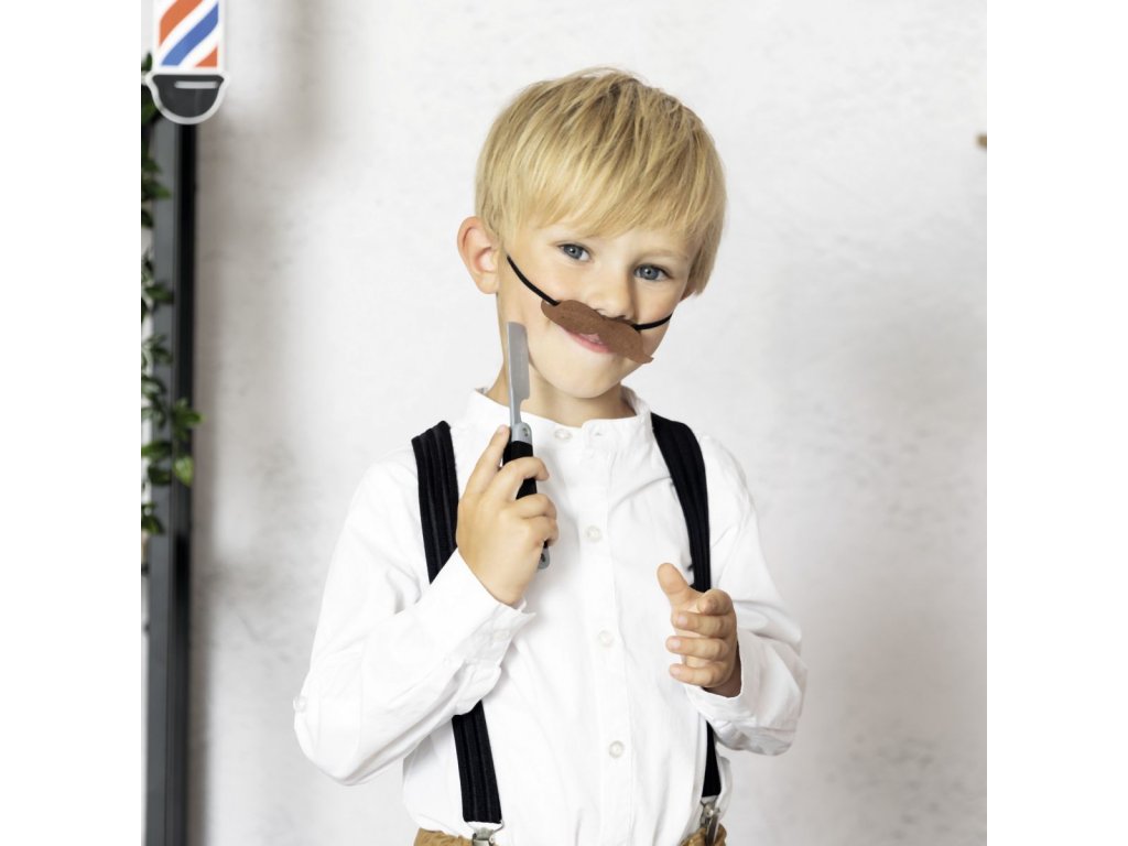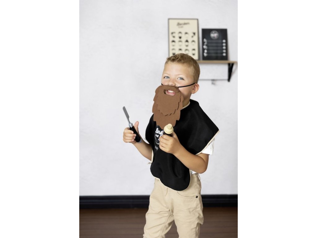 Holičská sada složená z 5 realistických doplňků: vousů, látkového pláště, holicího strojku, lahvičky s holící pěnou a ručník. Vousy mají několik vrstev plsti opatřené systémem suchého zipu, který umožňuje vytvořit více kombinací s různými tvary a délkami knírů a vousů. Zábavná sada, která vám umožní postarat se o vousy malých i velkých. Od 3 let.