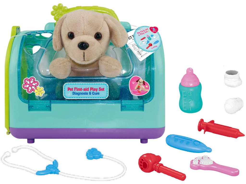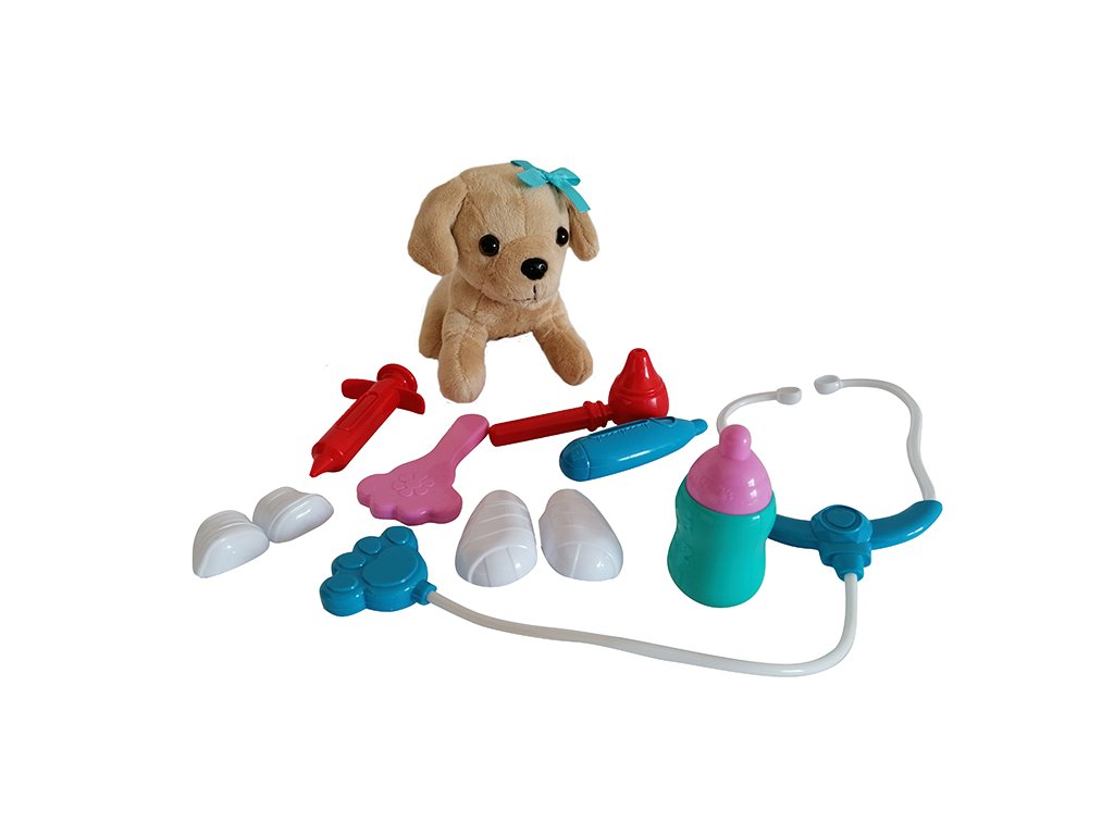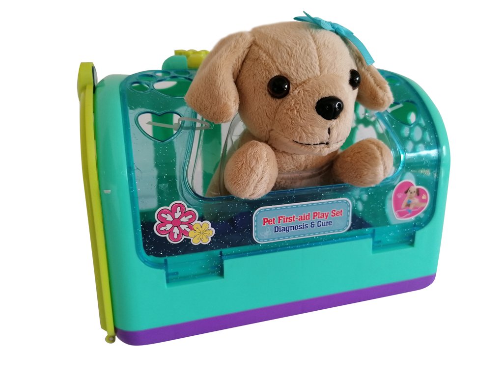 Veterinární stanice pro malé veterináře. Uzdrav malého pejska. Pejsek vydává zvuky.