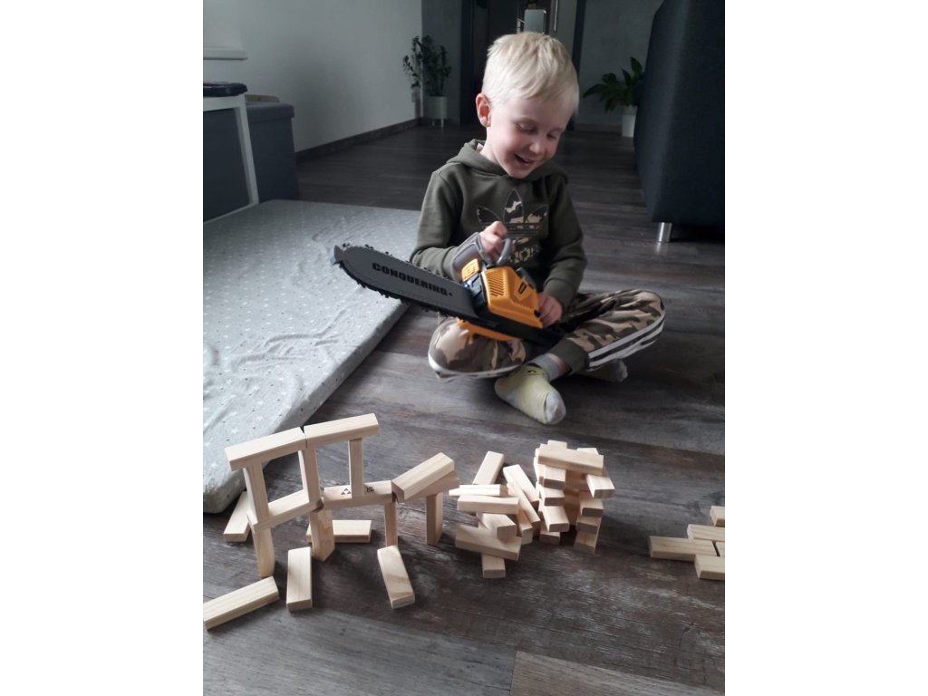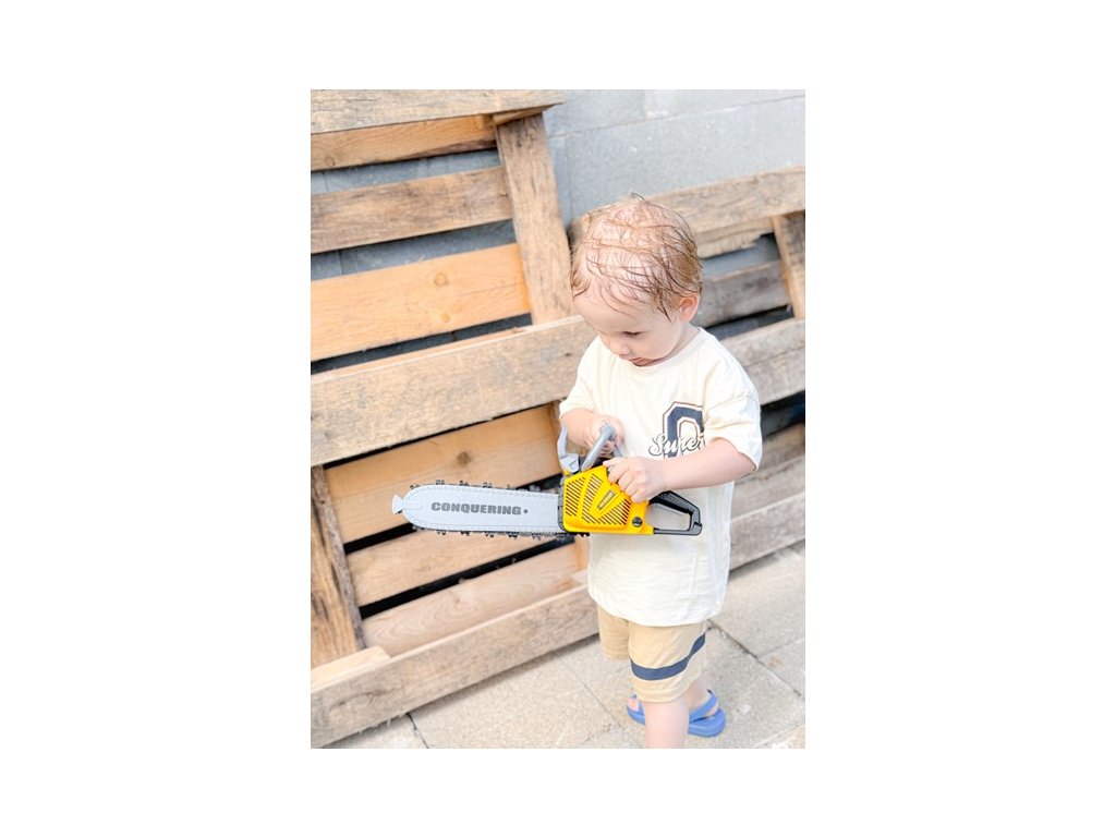 Motorová pila, která vydává zvuk řezání a svítí. Pilo rozvíjí dětskou motoriku a učí děti manuální práci.