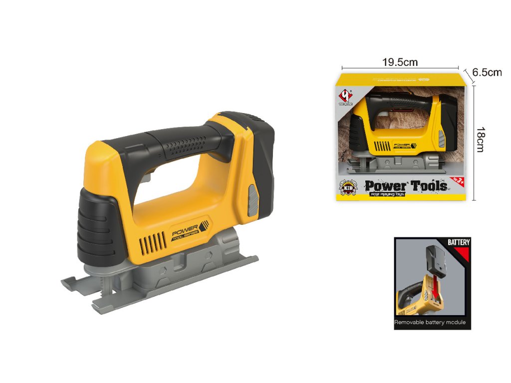 Hračka, která vypadá skoro jako opravdická pila, s kterou táta nebo děda něco kutí.