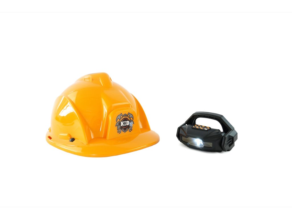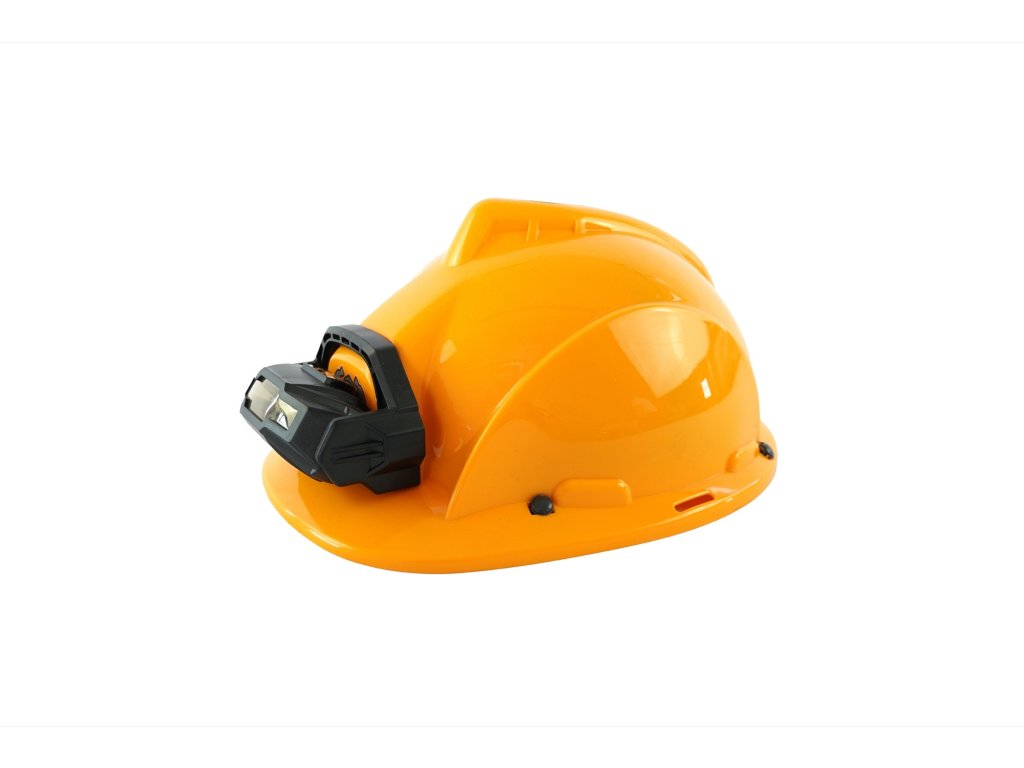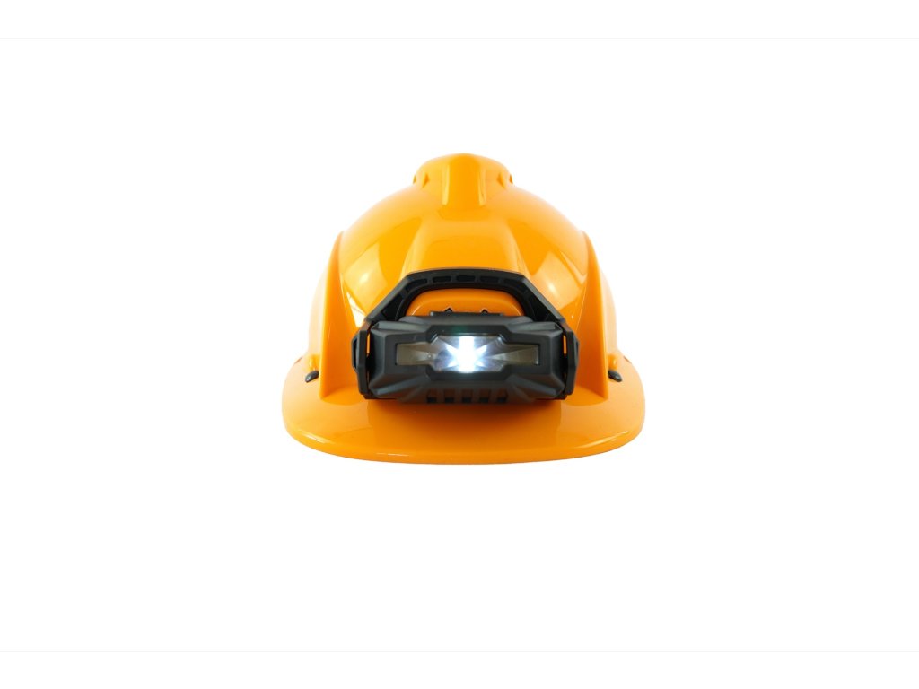 Plastová helma s funkční baterkou, která jde z helmy sundat.