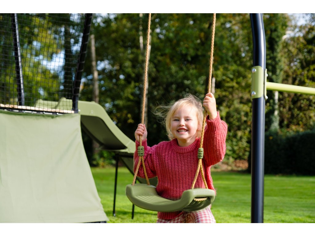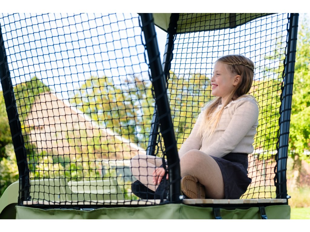 je ideálním místem pro zábavné odpoledne s přáteli. Děti mohou vylézt po schodech na dřevěnou plošinu, kde se mohou přidržovat pevných sítí, nebo se o ně pohodlně opřít, než si vlezou na skluzavku o délce 163cm. Hrací stan ve spodní části Ivy je skvělým místem k odpočinku. Vaše dítě si zde může odskočit s knihou, nebo si hrát se svými oblíbenými hračkami. A bude to ještě lepší! Zelená plátno hracího stanu lze snadno odstranit a ze spodní části Ivy se stane pískoviště. Dětem nikdy nedojdou věci na práci.