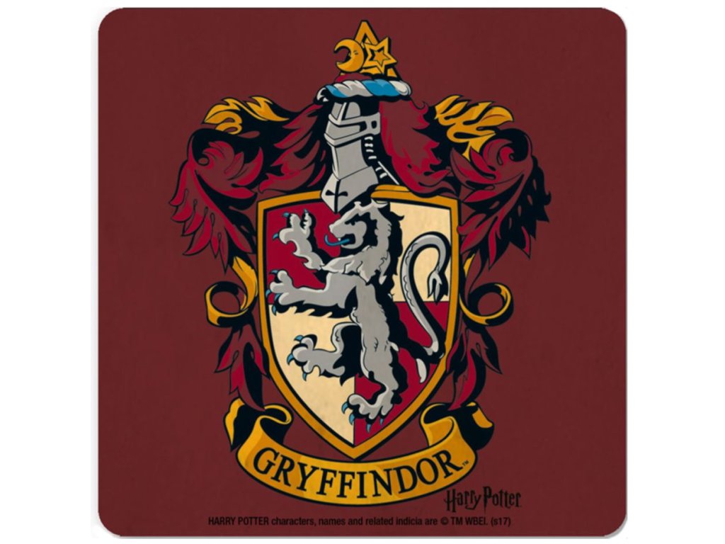 Sběratelský tácek pod sklenice, vyvedený v grafice a s logem erbu koleje Gryffindor.