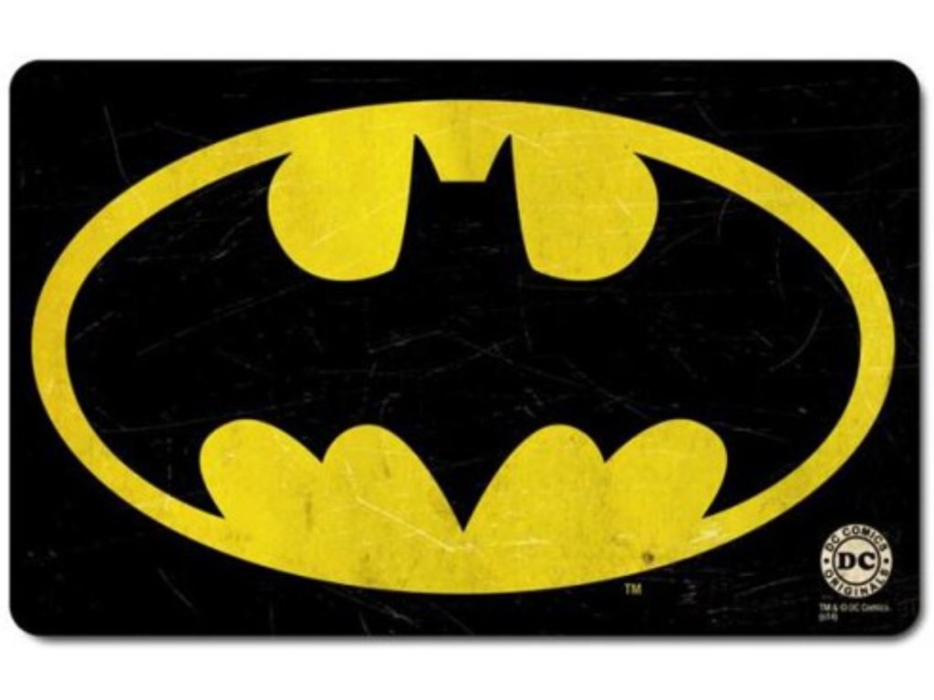 Oficiální podložka a doplňkové zboží z katalogu produktů se znakem, fotografiemi a grafikou komiksového hrdiny Batmana a společnosti Warner Bros.