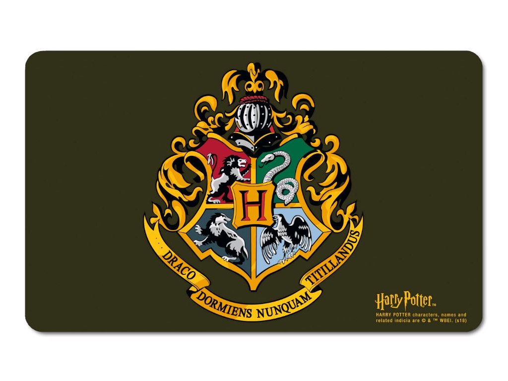 Oficiální podložka a doplňkové zboží z katalogu produktů se znakem, fotografiemi a grafikou filmové ságy o Harrym Potterovi.