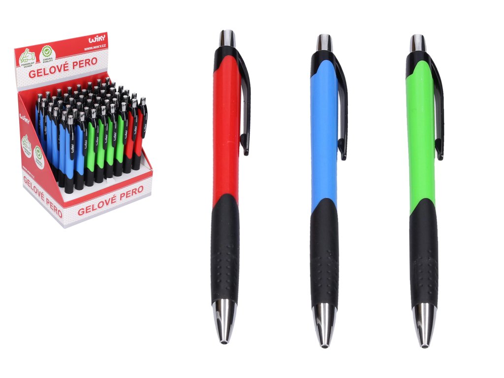 Propisovací pero moderního vzhledu s modrou náplní ve 4 barevných provedeních.