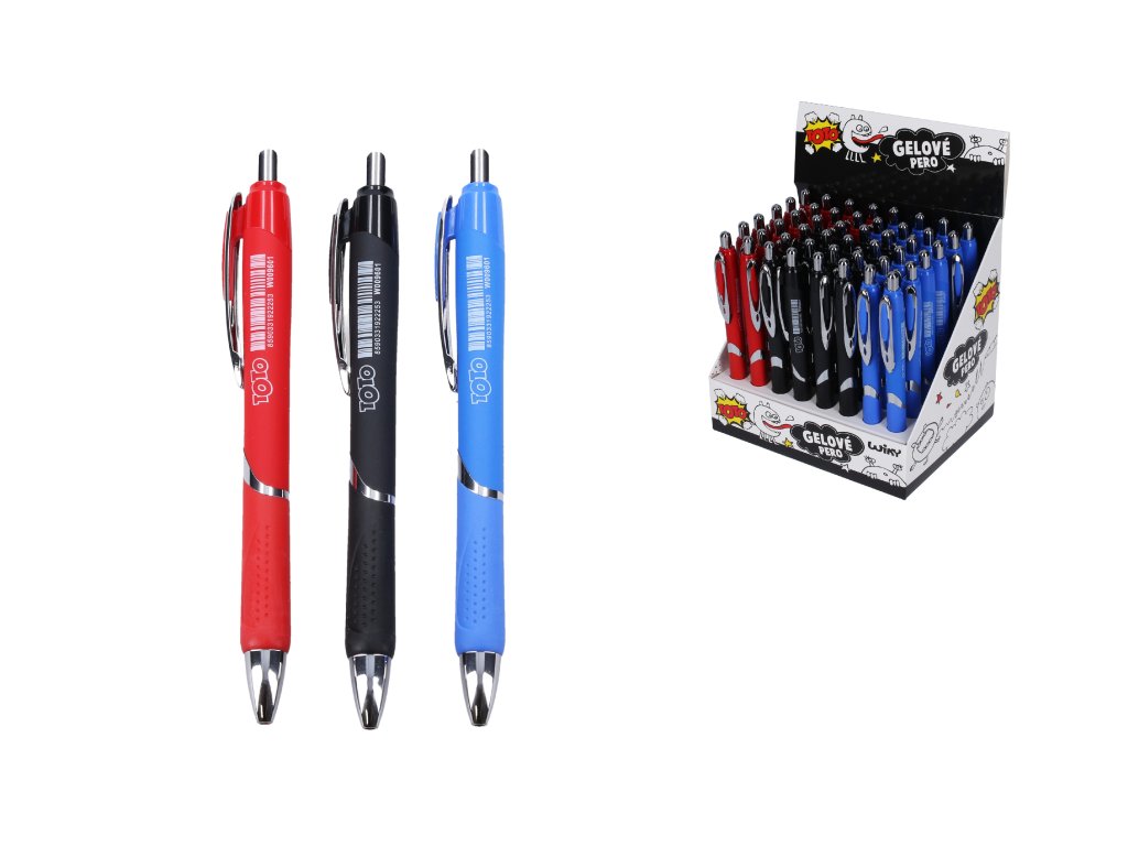 Barevné gelové pero s modrou náplní vhodné na psaní do školy i na doma.