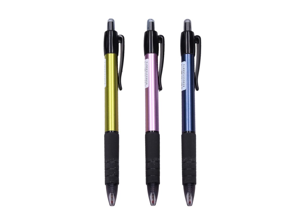 Barevné gelové pero s modrou náplní vhodné na psaní do školy i na doma.