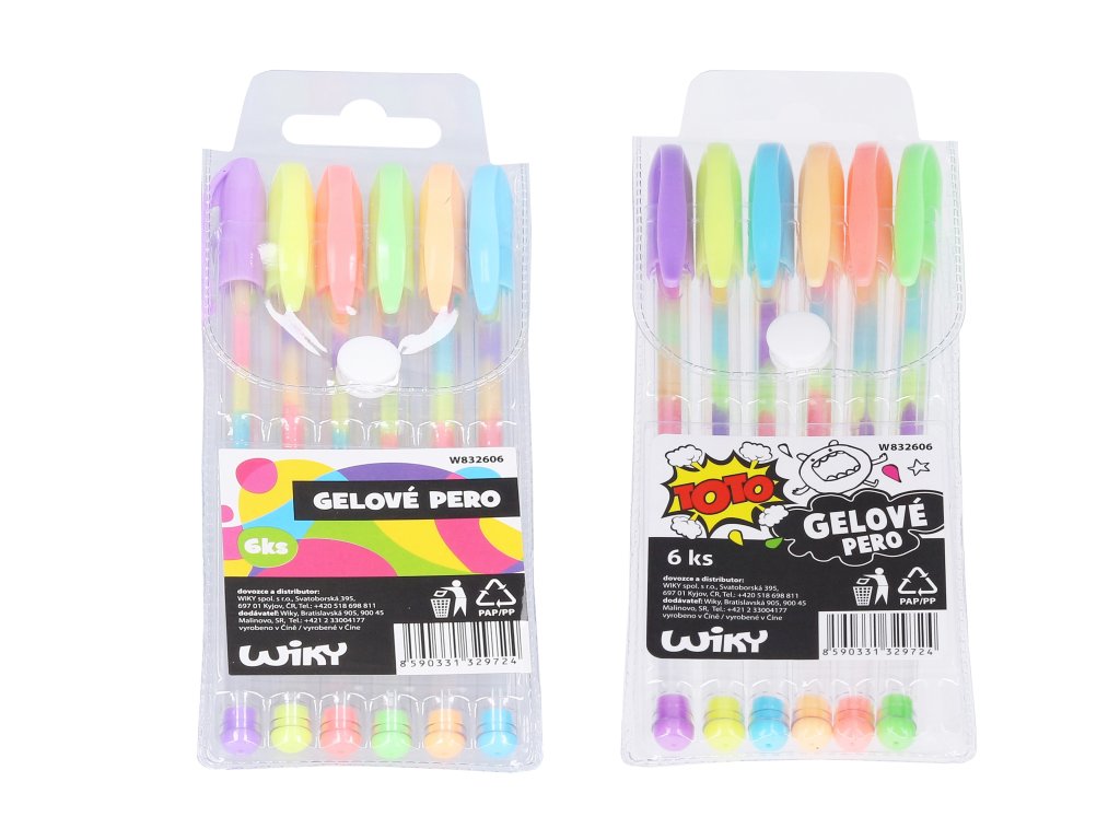 Sada gelových per. Průhledné kulaté tělo, koncovka a uzávěr v barvě náplně. Výrazně sytá reflexní stopa.
