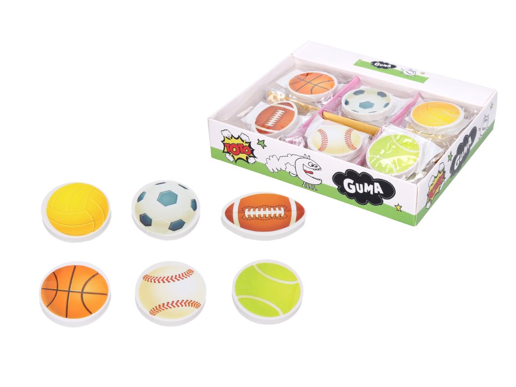 Mazací guma s motivem sportu - nezbytná pomůcka a základ výbavy každého malého školáka. Je vždy po ruce, ať už na stole nebo v penálu.