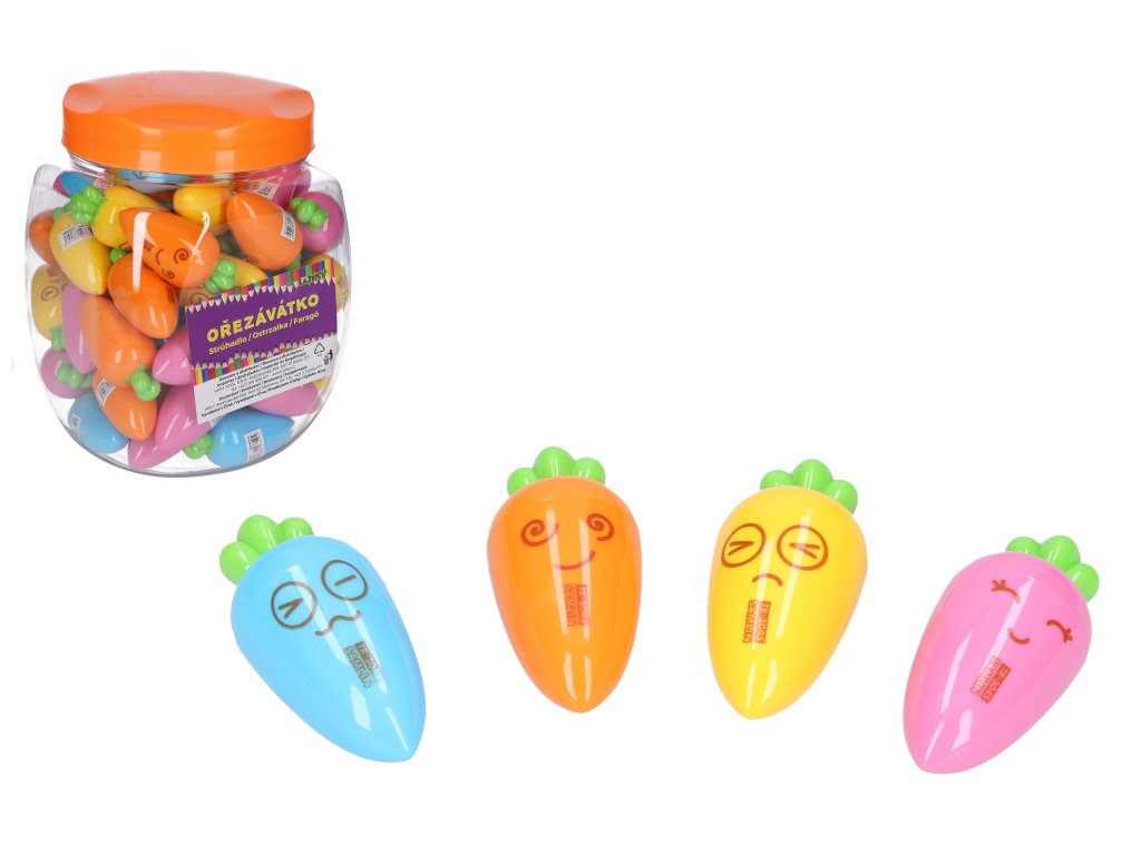 Ořezávátko na jednu tužku ve tvaru mrkve.