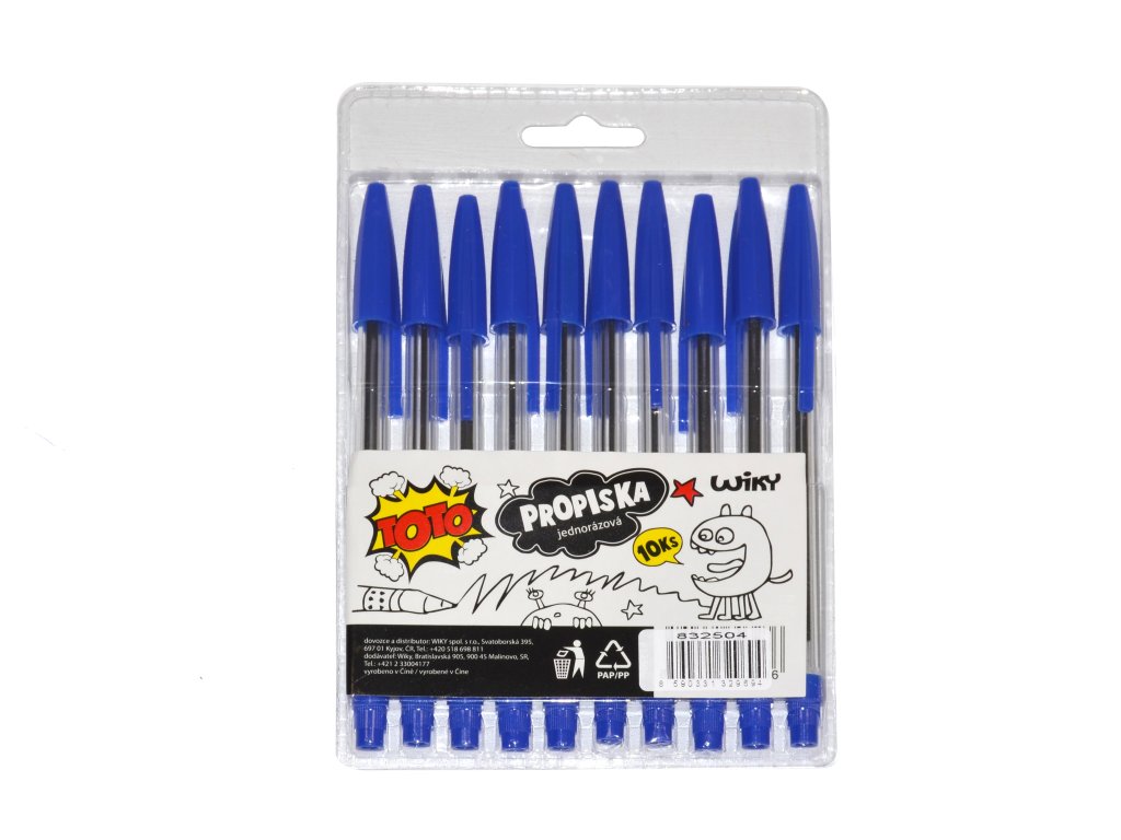 Sada modrých jednorázových propisek značky TOTO pro psaní ve škole nebo volném čase.