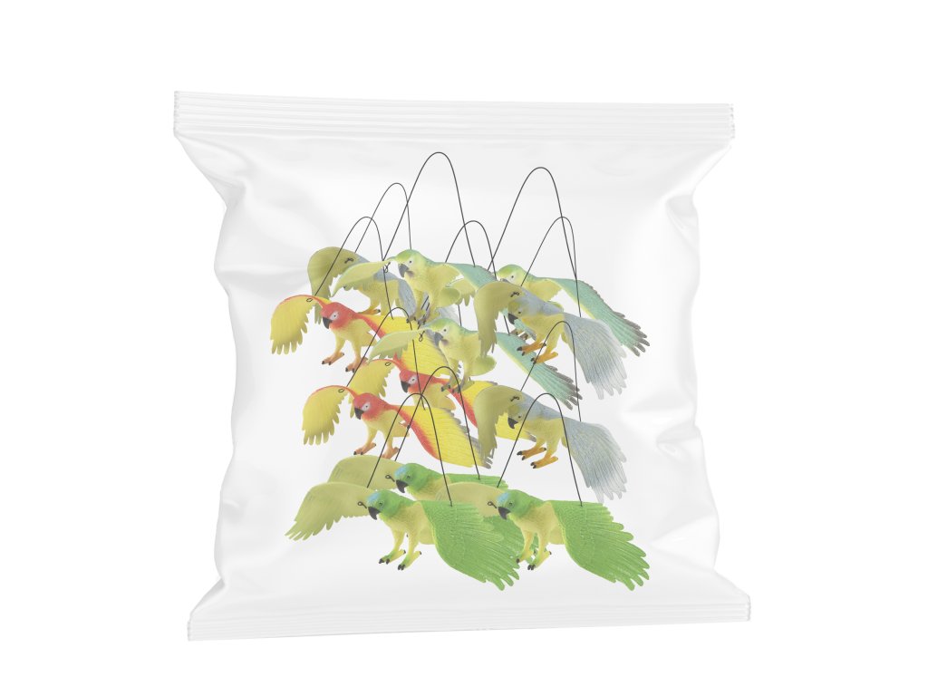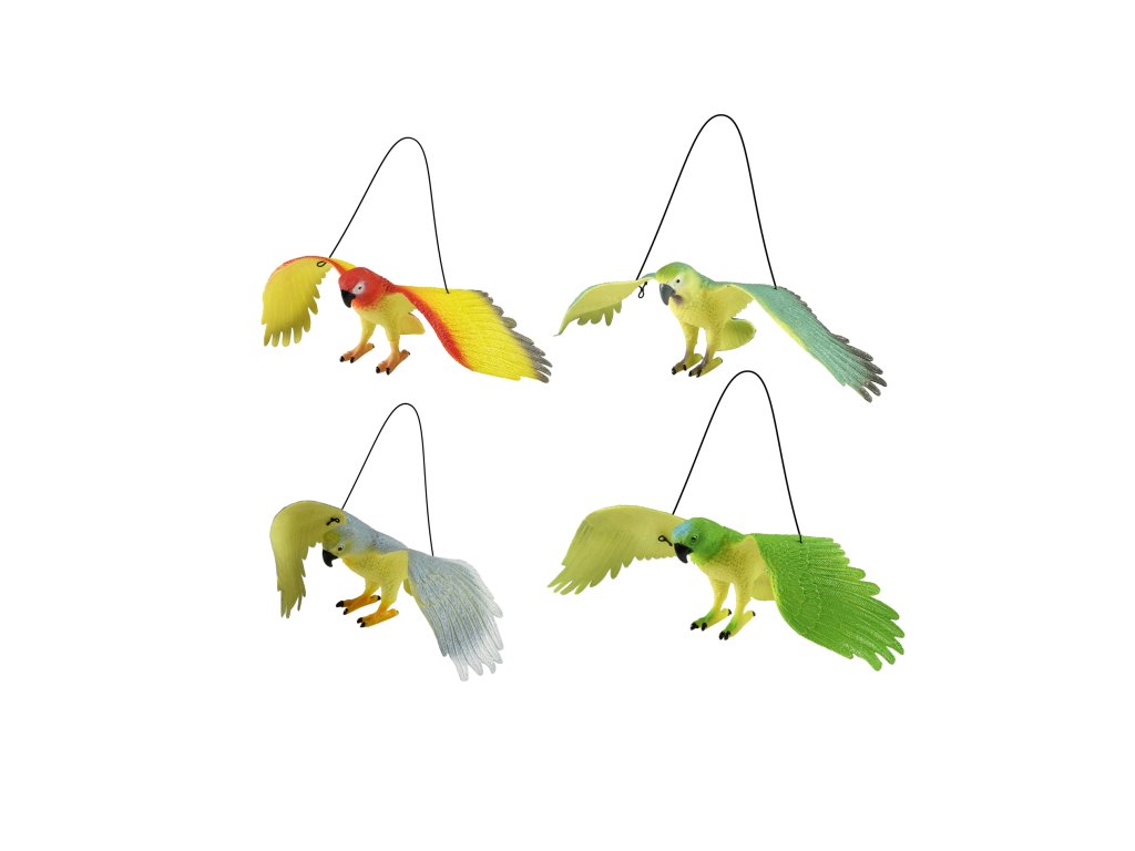 Vyber si svého papouška! Tito krásně zbarvení letci na gumičce nesmí ve tvé zvířecí sbírce chybět! Zmáčknutím zvířátka, vydává zvuk (píská). Papoušky prodáváme pouze v celém balení po 12 ks. Výška papouška cca 12 cm, rozpětí křídel cca 30 cm. Uvedena cena je za 1ks.