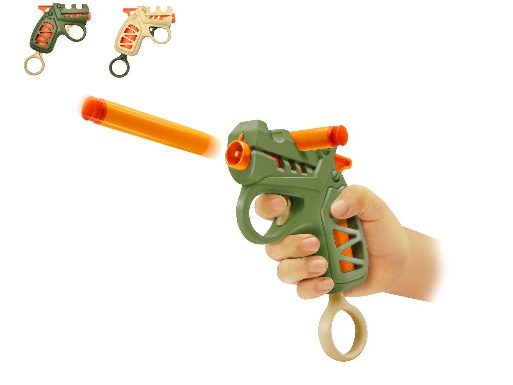 Huntsman Pistole kapesní natahovací. Velikost 13 cm. Dostřel až 18m. Střela se vkládá do hlavně zbraně, nabití pistole se provádí natažením prstýnku ve spodní části, spouští se vystřelí. Obsah balení - pistole, 3 pěnové střely. 2 varianty - zelená, hnědá.