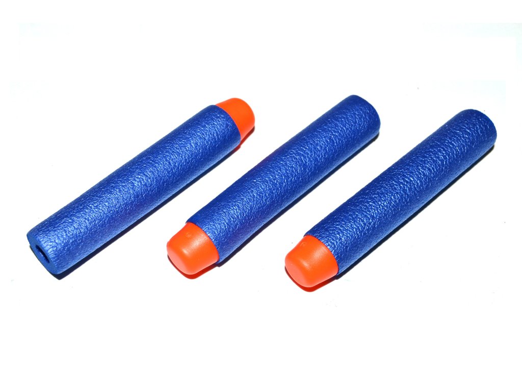 Pěnové náboje s pevným hrotem. Tyto pěnové náboje jsou kompatibilní s pistolemi od dalších výrobců.