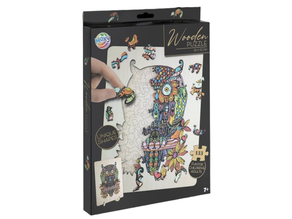 Úžasné puzzle s jedinečnými dřevěnými dílky o velikosti 30x22 cm, každý dílek je unikátní a je ve tvaru různých zvířátek, dílky se skládají do destičky, po složení vznikne z malých zvířátek/dílků obraz jednoho velkého, součástí balení je také praktický stojánek, aby bylo možné dokončenou skládačku patřičně vystavit. Zábava pro děti i dospělé.