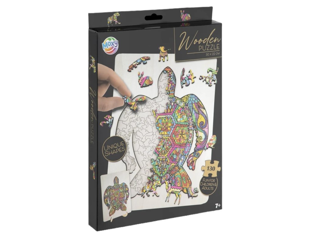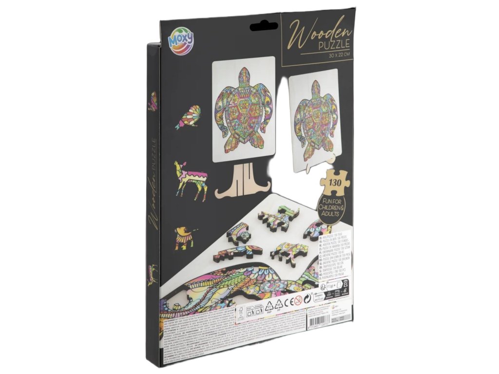 Úžasné puzzle s jedinečnými dřevěnými dílky o velikosti 30x22 cm, každý dílek je unikátní a je ve tvaru různých zvířátek, dílky se skládají do destičky, po složení vznikne z malých zvířátek/dílků obraz jednoho velkého, součástí balení je také praktický stojánek, aby bylo možné dokončenou skládačku patřičně vystavit. Zábava pro děti i dospělé.
