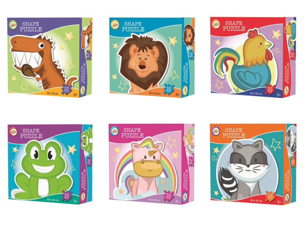 Puzzle 53 dílků 45x40 cm 6 druhů (Dino, Lev, Kohout, Žába, Jednorožec, Mýval). Nelze vybrat druh, dodáváme dle skladové dostupnosti.