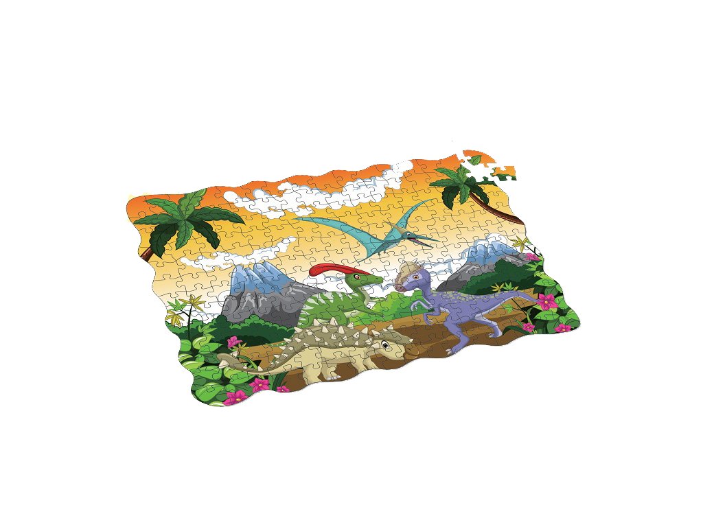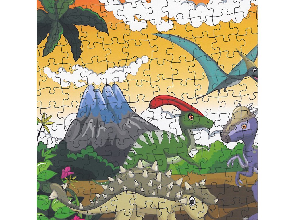 Puzzle dinosauři nabízí dětem kreativní a chytrou zábavu. Z 208 velkých dílků si poskládají obrázek života na Zemi před mnoha milióny let. Přitom si budou rozvíjet fantazii, prostorovou představivost, trpělivost a jemnou motoriku. Skládačka je ideální pro děti od 4 let. Všechny části jsou z pevné lepenky. Poskládaný obrázek měří 64 x 90 cm.