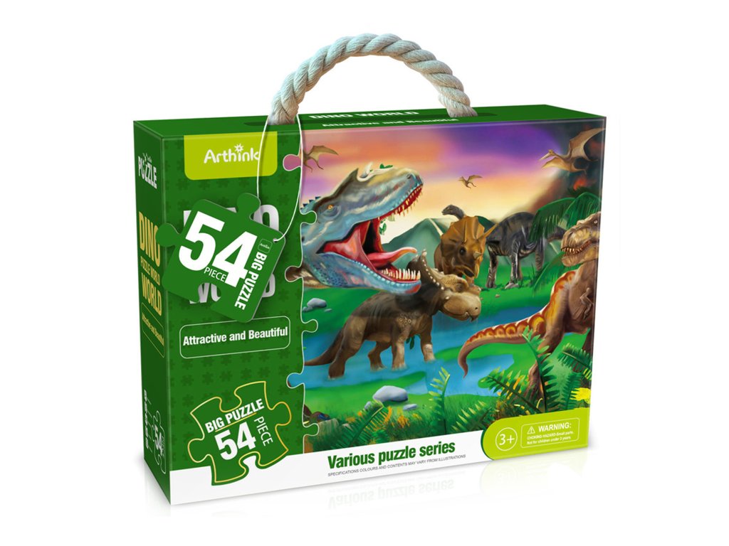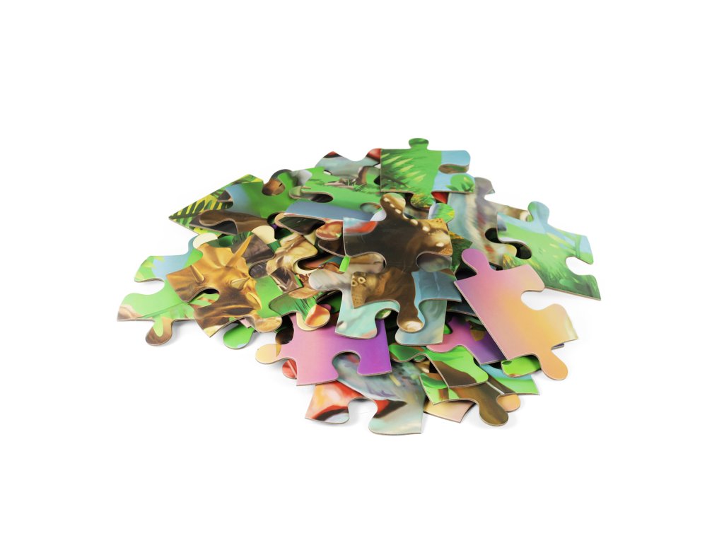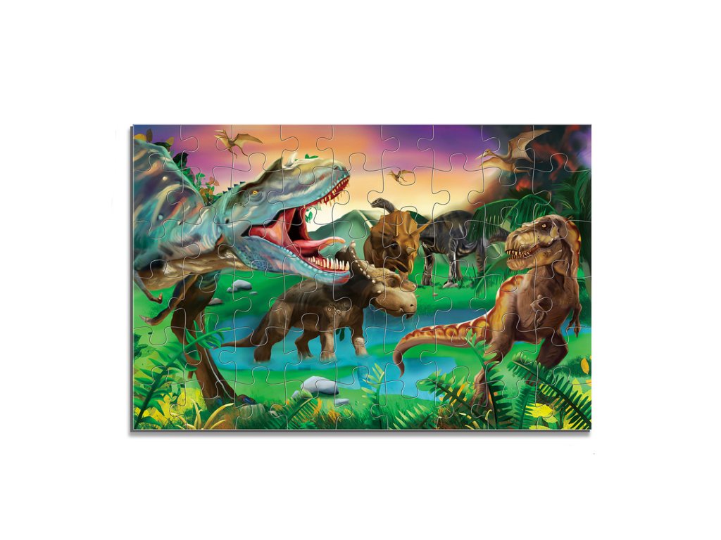 Maxi puzzle pro děti s motivem oblíbených dinosaurů. Balení obsahuje 54 dílů, jednotlivé dílky jsou dost velké pro snadný úchop dětí už od 3 let. Výsledný obrázek má velikost 87 x 58 cm.