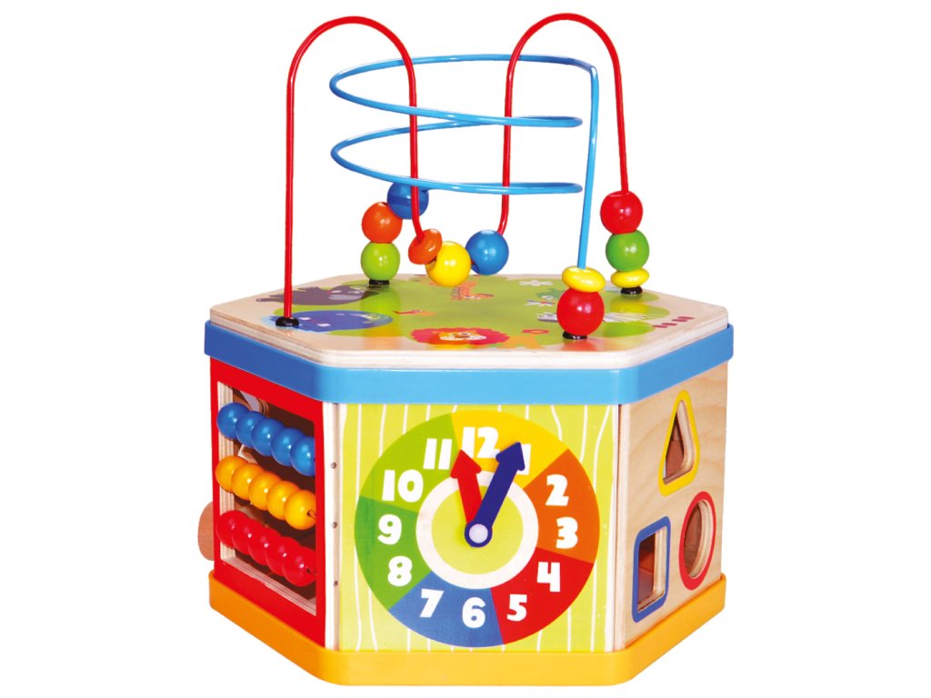 Multifunkční motorická kostka je kvalitní dřevěnou hračkou pro malé šikulky. Díky rozmanitým aktivitám, které mohou děti na každé stěně kostky plnit, procvičují jemnou motoriku ruky, logiku a soustředěnost. Rozměr: 30x35x30