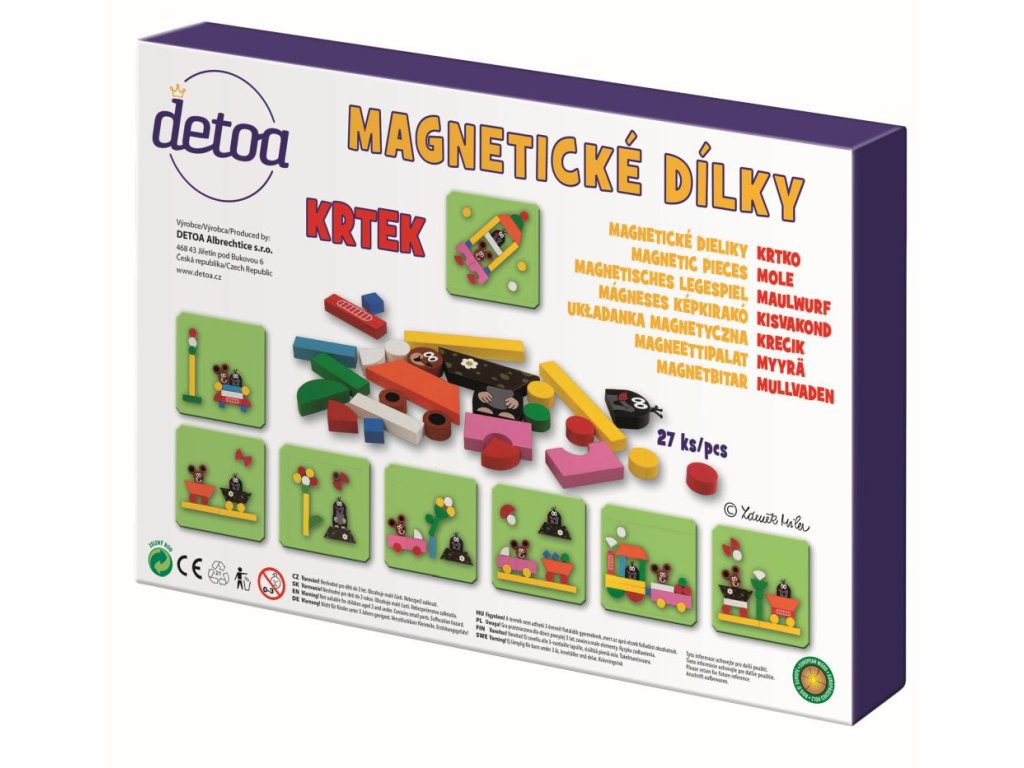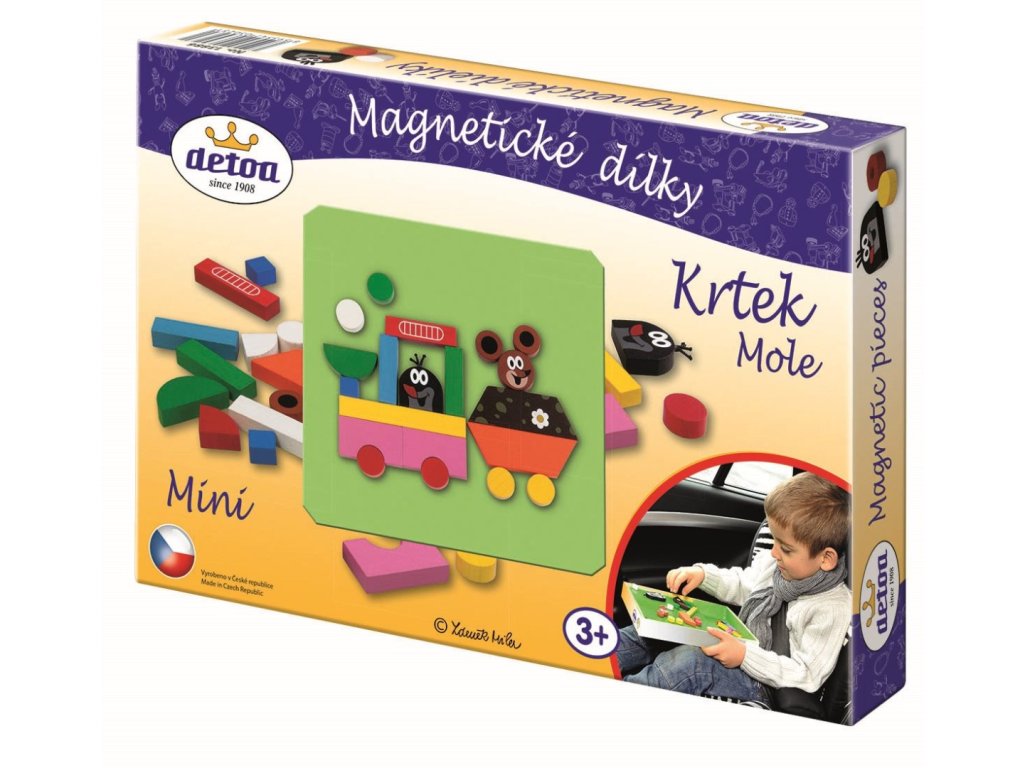 Na kovovou tabulku si děti mohou skládat nepřeberné množství obrázků s motivem Krtečka a jeho kamarádky Myšky. Výrobek podporuje zručnost a fantazii dětí. Je vhodný pro děti od 3 let.