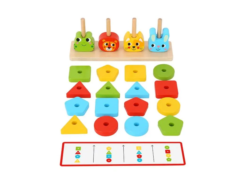 Jeden, dva, tři, čtyři, pět – poskládejte dřevěné dílky na sebe a vytvořte si kamaráda! Tato rozkošná stohovací hra obsahuje 4 zvířátka (žábu, lva, kočku a králíka), jejichž dílky můžete na tyčích libovolně kombinovat. Výrobek má roztomilý design v klasických pestrých barvách a je skvělým pomocníkem při rozvoji zručnosti a rozpoznávání tvarů. V sadě jsou k dispozici kartičky, podle kterých se vaše ratolesti mohou řídit. Hlavní vlastnosti:• vyrobeno z FSC® dřeva• motorická vzdělávací hračka• trénuje koordinaci ruka-oko• ideální pro rozvoj kreativity a obratnosti