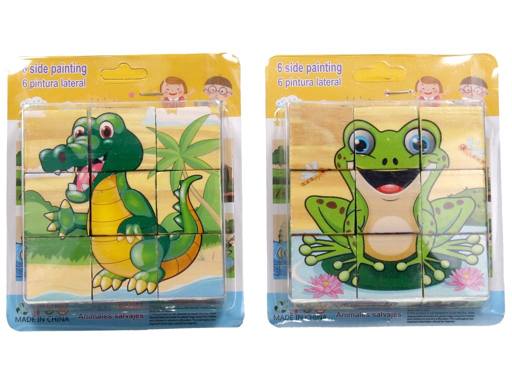 Kostky obrázkové dřevěné. Rozměry složených kostek 10x10 cm.