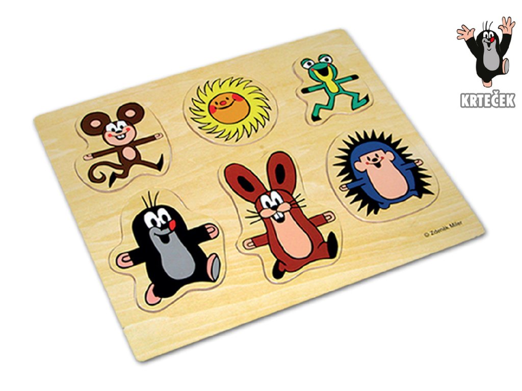 Vkládačka kamarádi dřevěná Krtek. Rozměry 31,5x26x0,8 cm.