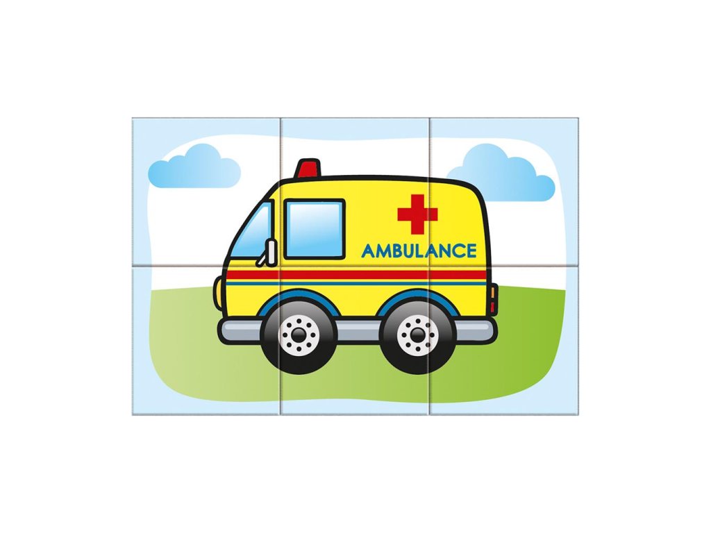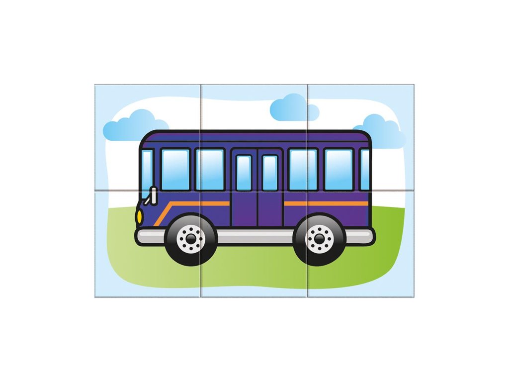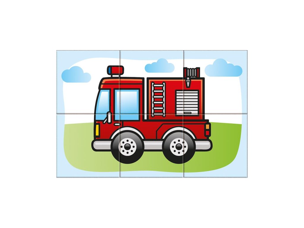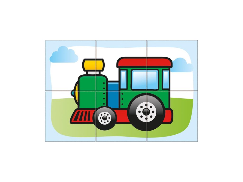 Dětské dřevěné kostičky, ze kterých lze sestavit 6 různých obrázků. Balení obsahuje 6 kostiček. Věk: 3+
