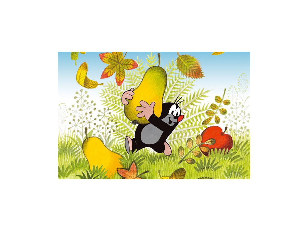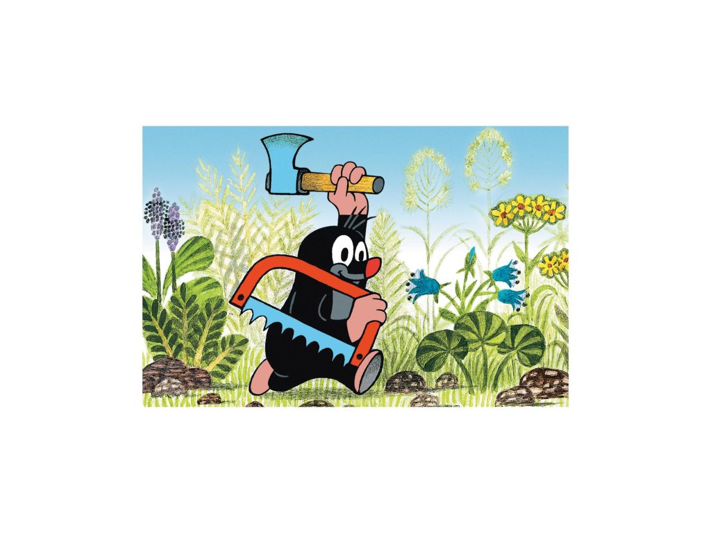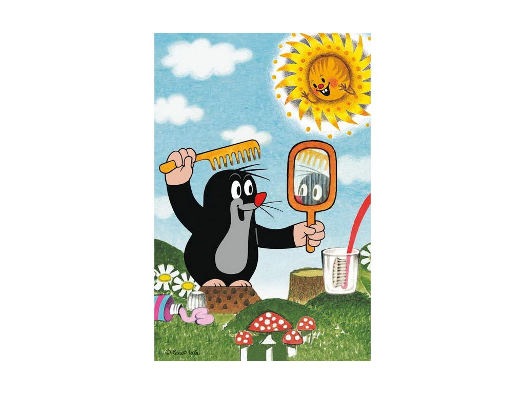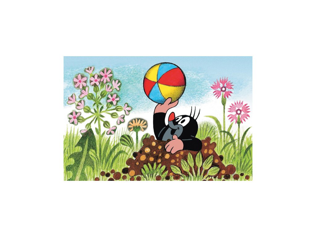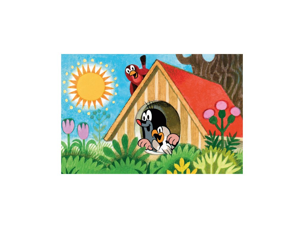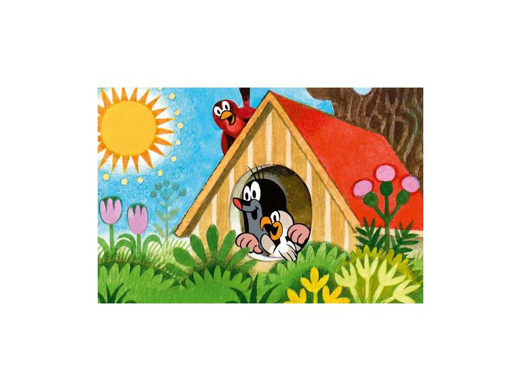 Minipuzzle s motivem Krtečka obsahující 54 dílků. Velikost složeného obrázku 19,8 x 13,2 cm.