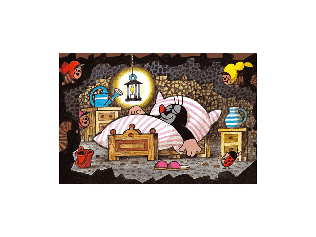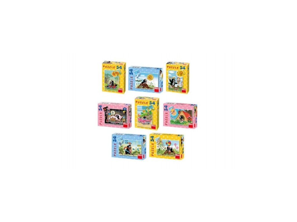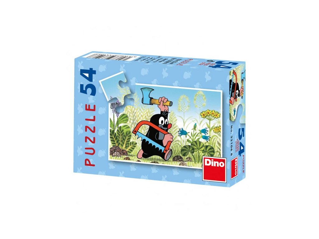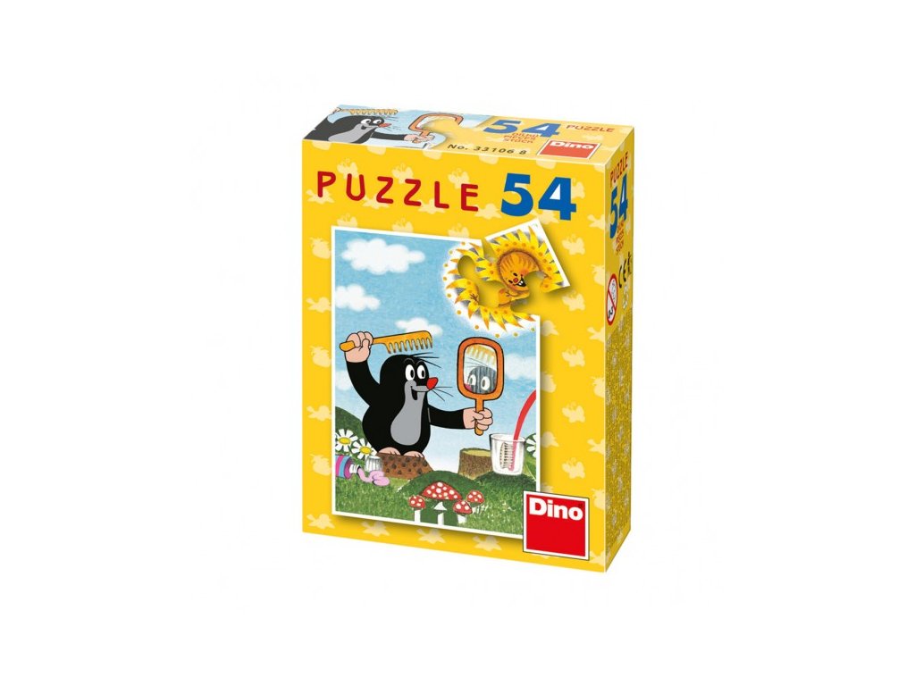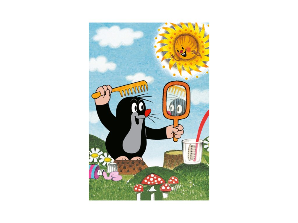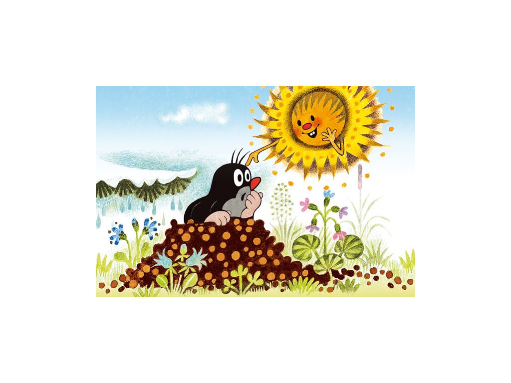 Minipuzzle s motivem Krtečka obsahující 54 dílků. Velikost složeného obrázku 19,8 x 13,2 cm.
