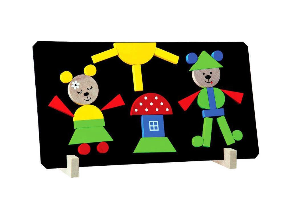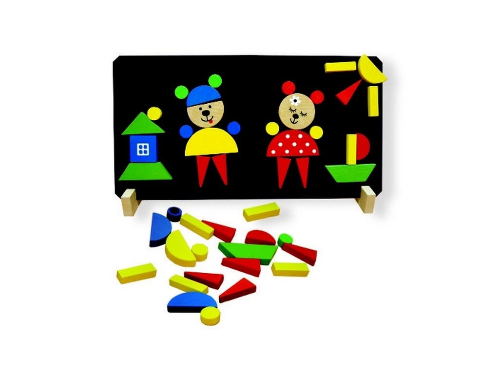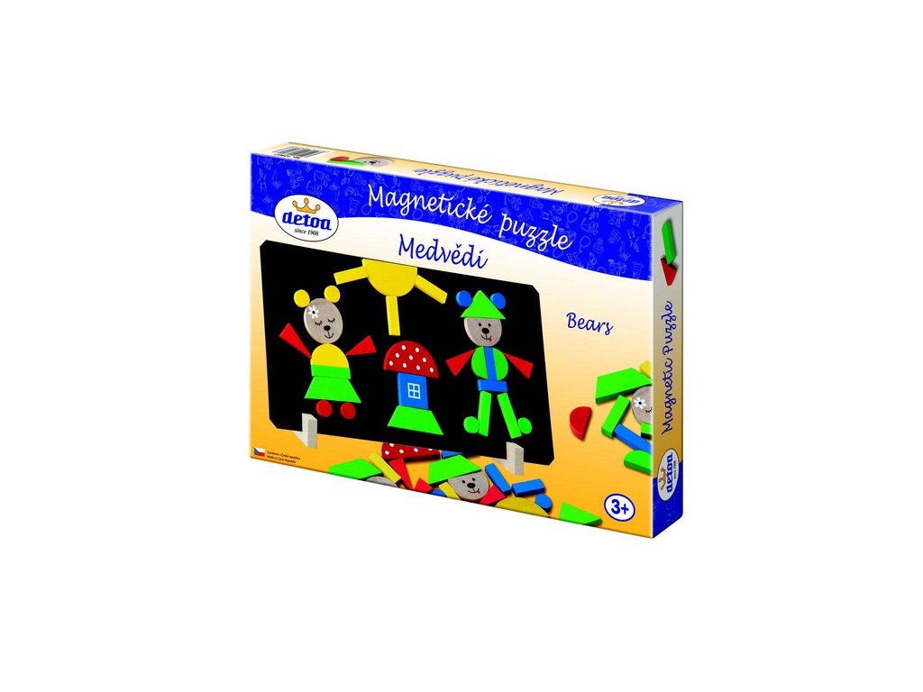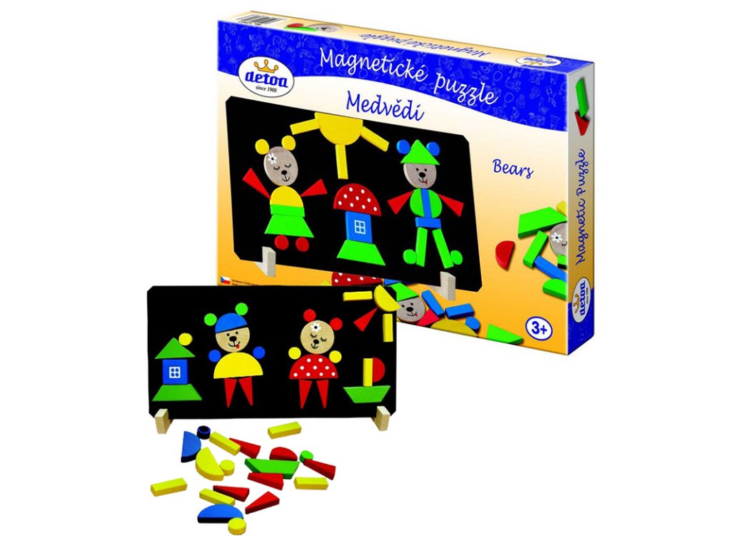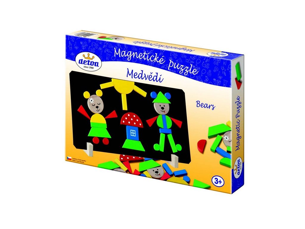 Senzační magnetické puzzle s motivem medvědů pobaví tebe i tvé kamarády. Tento parádní kousek pomáhá rozvíjet jemnou motoriku a představivost. Balení obsahuje magnetickou tabulku, dřevěný stojánek a 37 dřevěných dílků s magnetkami, ze kterých lze sestavovat různé obrázky. Sestav si vlastního medvěda! Fantazii se meze nekladou.