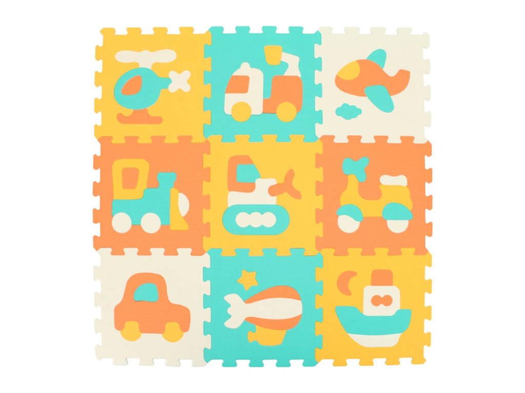 Puzzle pěnové doprava 9ks. Velikost 32x32 cm, tloušťka 1 cm. Pěnové puzzle s obrázky dopravních prostředků.