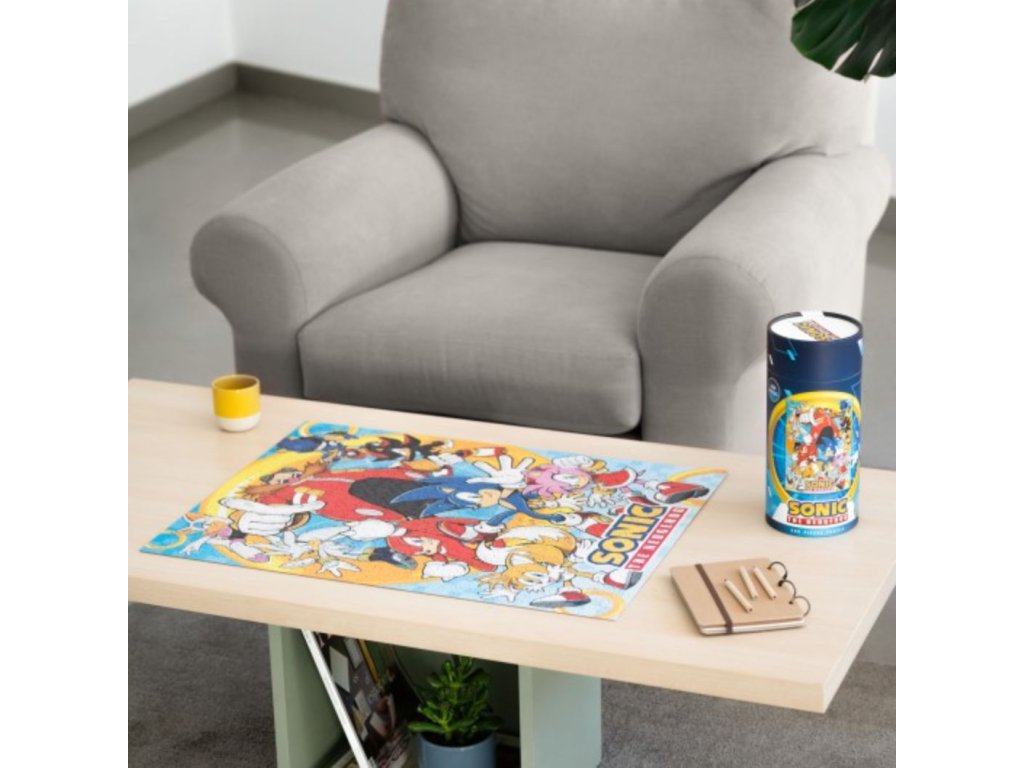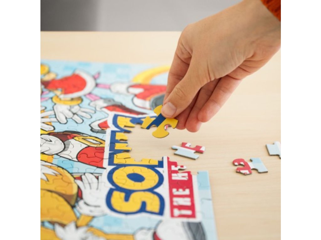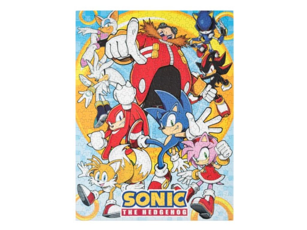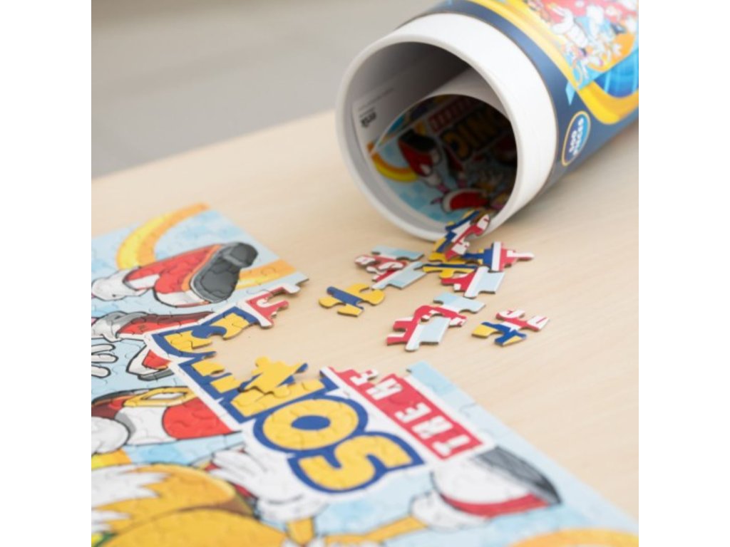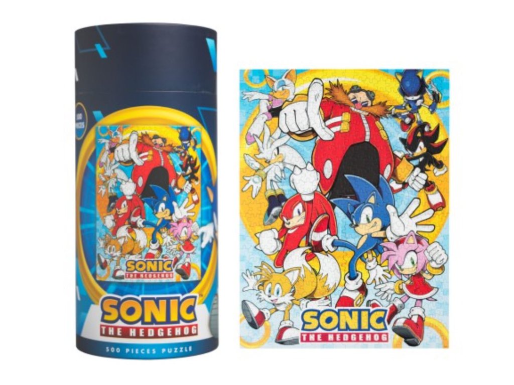 Puzzle s grafikou postav z videohry Sonic The Hedgehog. Ideální dárek jak pro milovníky skládání puzzle, tak pro hráče této videohry. Jednotlivé kousky jsou zabaleny v elegantním válcovém balení, které obsahuje 500 kusů kartonových dílků a plakát jako návod pro stavbu. Vhodné pro ty fanoušky, kteří se chtějí zabavit i mimo počítač svou oblíbenou hrou.