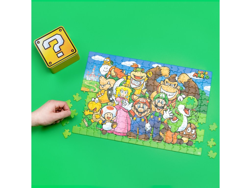 Zajímavé puzzle, které vás vtáhne do světa Super Maria. Puzzle je vyvedeno v grafice postav z této oblíbené videohry. Pojďte se společně s našimi hlavními hrdiny vydat na záživnou cestu celou hrou. Puzzle si můžete složit na společných rodinných chvílích, narozeninových oslavách či při chvíli volna a samoty. Puzzle je vhodným dárkem pro každého menšího i většího fanouška této oblíbené videohry.