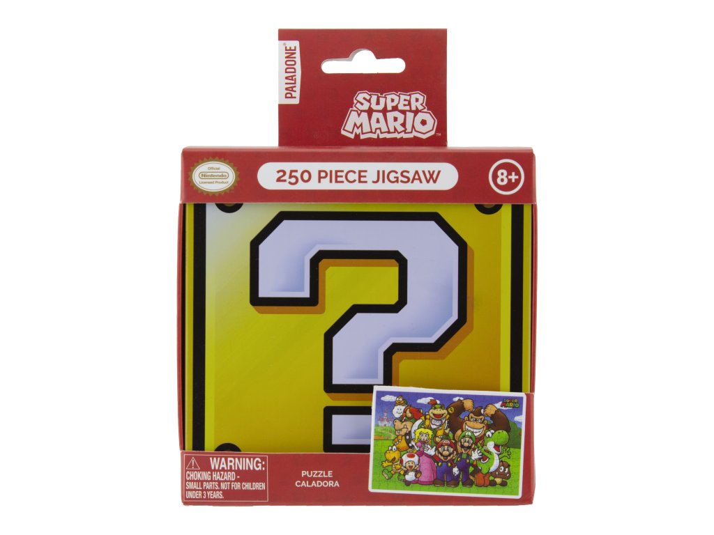 Oficiální produkt - puzzle z katalogu zboží s logem, fotografiemi a grafikou videohry Super Mario od herní konzole Nintendo.