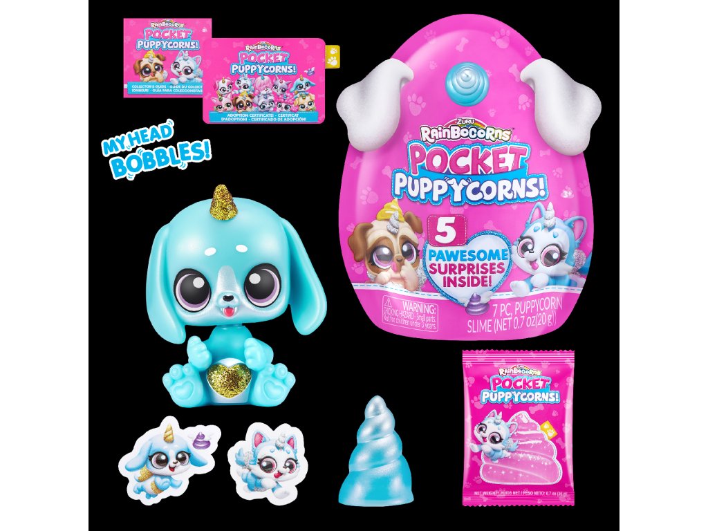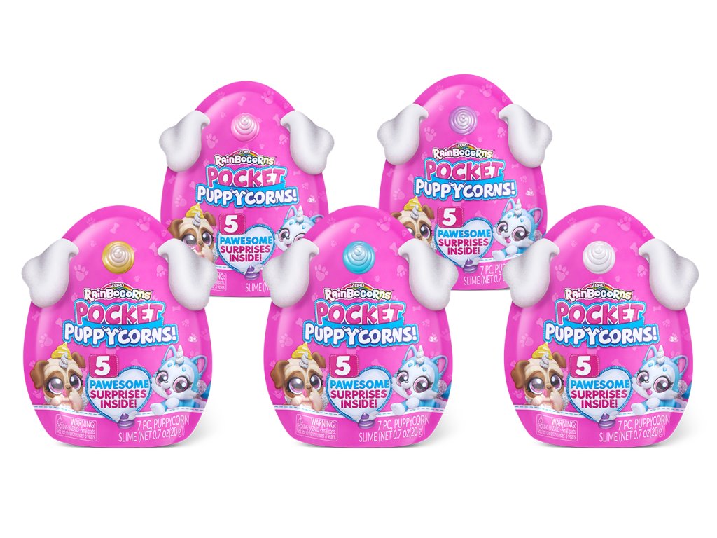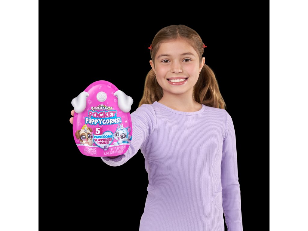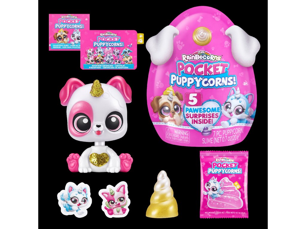 Uvnitř najdete 5 skvělých překvapení, včetně štěňecího slizu, nálepek a ozdoby na tužku!