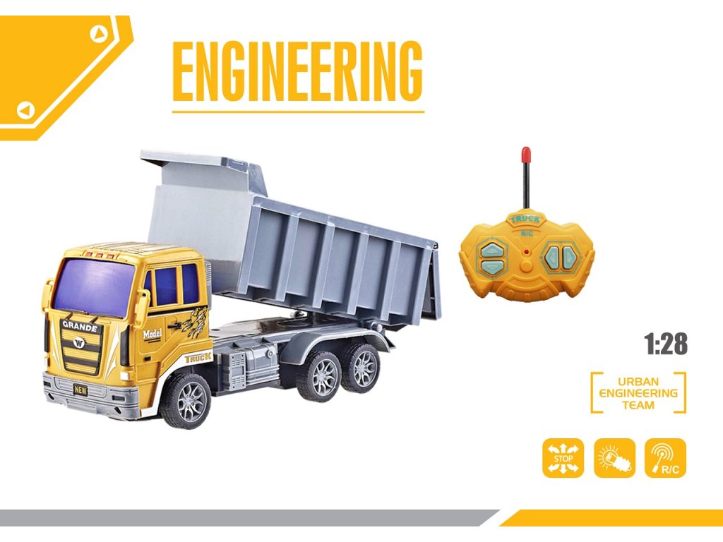 Sklápěčka na dálkové ovládání. Pohybuje se dopředu, dozadu a dostran. Velikost 1:28. Nabíjení na USB.