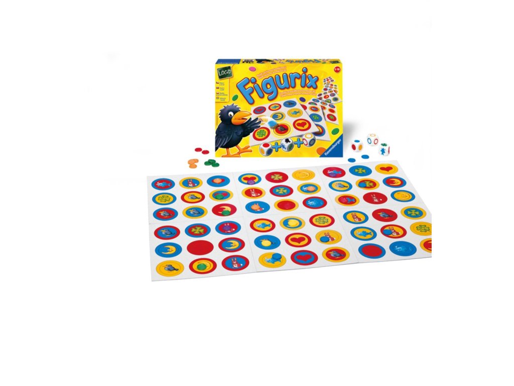Na třech dřevěných kostkách vidíte kroužky, kolečka a obrázky v různých barvách. Kdo najde jako první hozenou kombinaci na barevných tabulích?