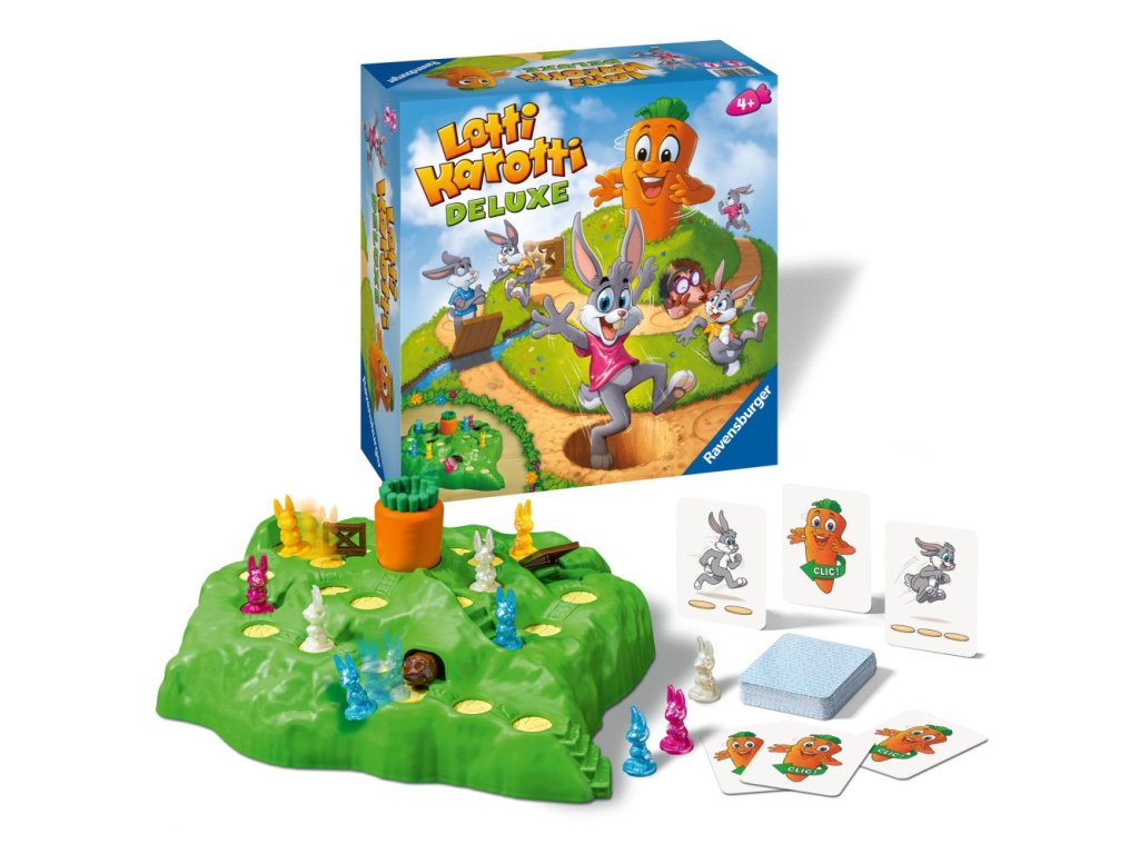 Soutěžení, zábava a napětí pro celou rodinu. Naši malí zajíci se snaží jako první dostat ke šťavnaté mrkvi na vrcholu kopce. Cesta k ní je však plná překvapení: tu a tam se cestou objeví jáma a - žuch - některý ze zajíců do ní spadne. Jindy je zase ze svahu shodí všetečný krtek. Cestu k cíli ztěžují zajícům také padací most a dřevěná branka.