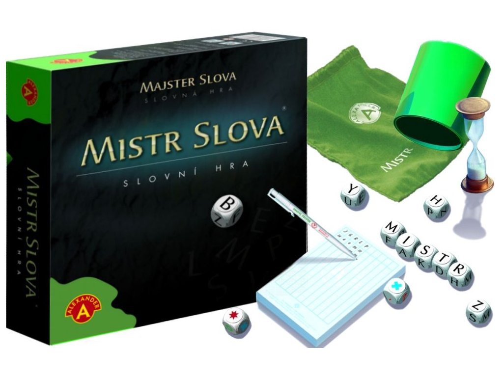 „Mistr slova“ je originální, svižná, slovní hra pro 2-10 hráčů od 8 do 99 let. Každý hráč se snaží co nejrychleji složit slovo z písmen, které mu padly na kostkách vržených z kelímku.