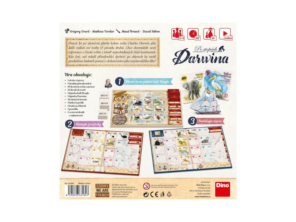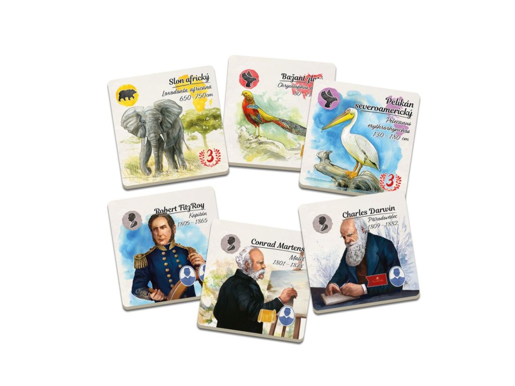 Připojte se na dobrodružnou plavbu kolem světa k Charlesi Darwinovi a společně dokončete slavnou knihu O původu druhů. Studujte zvířata, objevujte nové světy, publikujte své poznatky a rozvíjejte teorie. Nádherné ilustrace doplňují bohatě vybavenou hru určenou pro 2–5 hráčů. Věk 8+