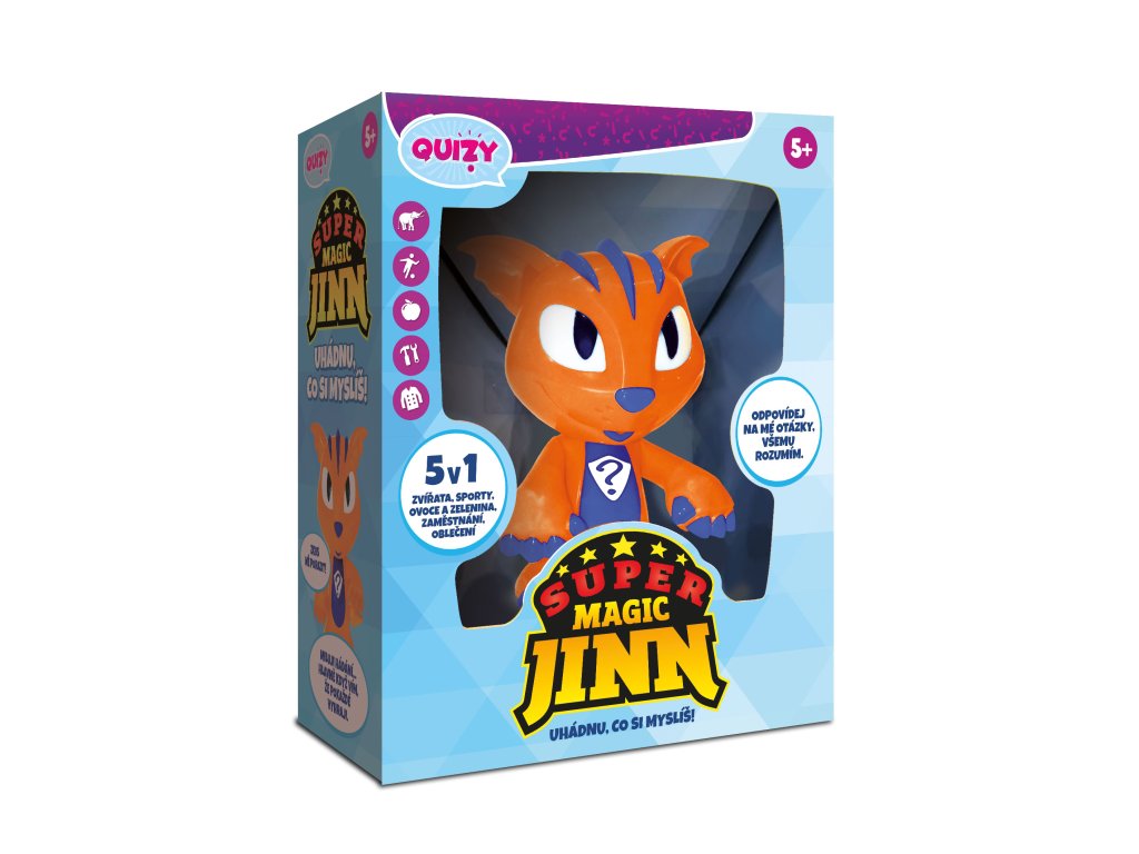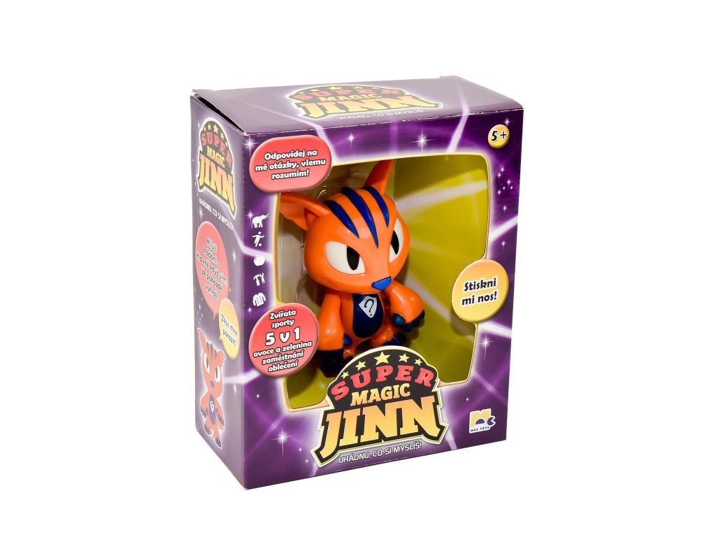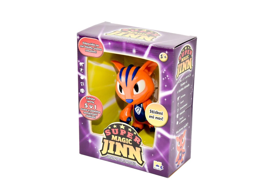 Zábavná hra pro jednoho hráče. Super Magic Jinn uhádne vždy na co myslíš. Nevěříš, vyzkoušej to. Stačí mu stisknout nos a vybrat dané téma třeba zvířata, oblečení, sport, zaměstnání nebo ovoce a zelenina. A potom již jenom odpovídej na otázky, ano, n