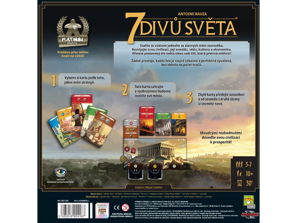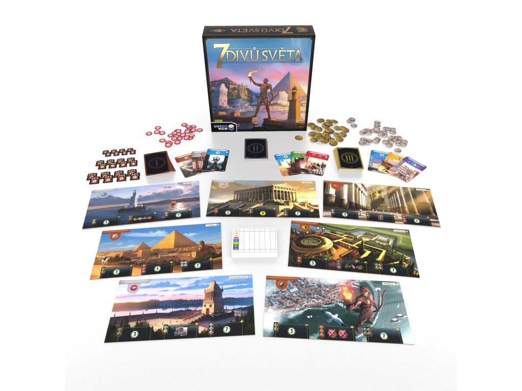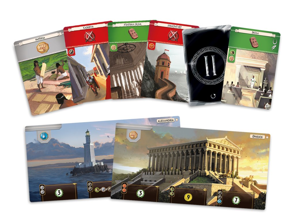 Několik bodů přináší i nashromážděné bohatství v pokladnici. Díky tomu je možné se v každé hře soustředit na jinou taktiku nebo průběžně měnit styl hry podle způsobu hry soupeřů. Ve hře je sedm odlišných divů světa, z nichž každý se staví jinak a přináší jiné výhody.