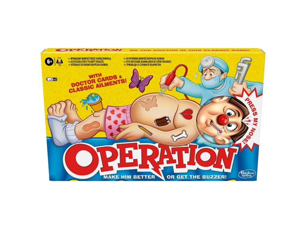S touto oblíbenou společenskou hrou Operace se na chvilku stanete skutečnými doktory a zachráníte pacienta od všemožných bolístek. Rodinná operační hra s opravdovými nemocemi. Pomozte Samovi být opět ve formě. Pomocí pinzety odstraňte všech 12 samových srandovních neduhů. Hráči si vybírají lékařskou kartu a ´´operují´´, aby Sama vyléčili. Vyhni se varovnému bzučení, vybírej peníze a vyhraj! Hra Operace od Hasbro vás vytrénuje v rychlém rozhodování a vaše děti si u ní zároveň procvičí pojmenovávání jednotlivých částí těla. Tato společenská hra vás spolehlivě zabaví jako jedince, stejně tak jako ve skupině s přáteli či rodinou. Hra vyžaduje 2x AA baterie, které jsou součástí. Rozměr balení: 25,1 x 40 x 4,1 cm. Vhodné pro 1 či více hráčů. Doporučený věk od 6 let.