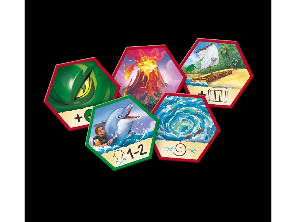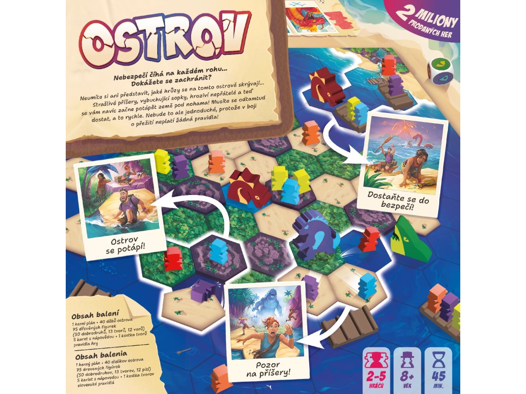 Ve hře Ostrov se budete starat o tým 10 dobrodruhů prchajících z potápějícího se ostrova. Každý dobrodruh u sebe má poklad, jehož hodnota je uvedena na spodní straně figurky.