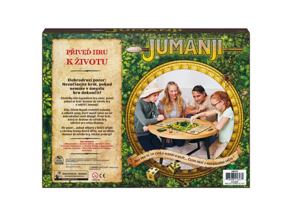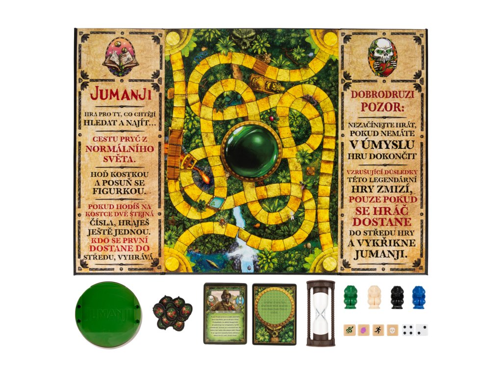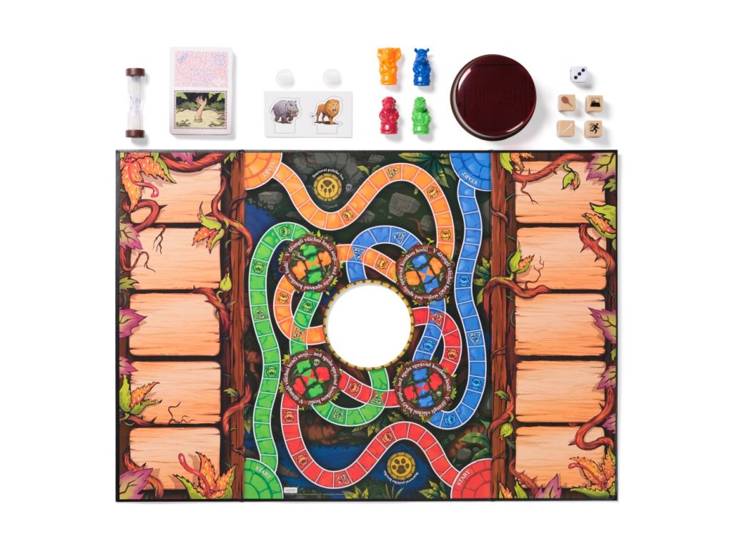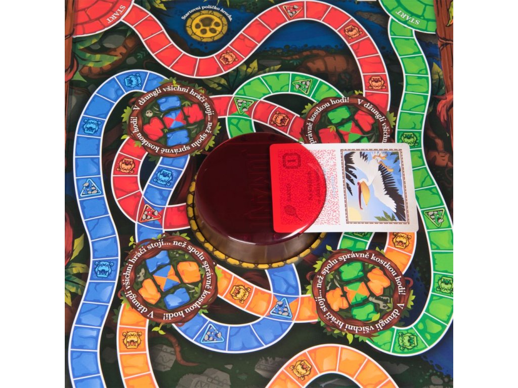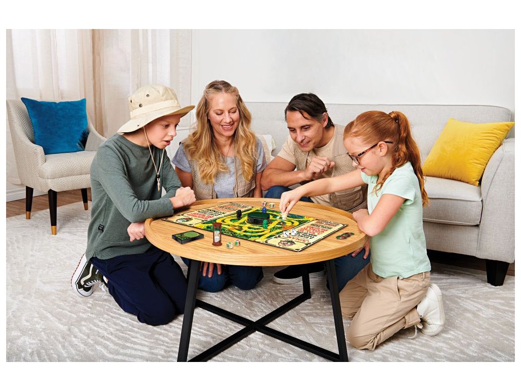Známá hra v nové podobě. Hoďte osmistrannou kostkou a uvidíte, co vás čeká. Karta nebezpečí vám s pomocí dekodéru pomůže rozluštit tajnou zprávu, zachraňte se před koncem světa. Všichni hráči závodí s časem, aby přežili. Jinak vás a vaše spoluhráče džungle porazí. Obsahuje: 1 hrací desku, 4 barevné figurky, 1 figurku nosorožce, 1 přesýpací hodiny, 1 číselnou hrací kostku, 4 kostky záchrany, 30 karet nebezpečí, 1 dekodér, 1 návod. Hra pro 2-4 hráče od 8 let. Rozměr balení: 36,8x27,3x4,8 cm.